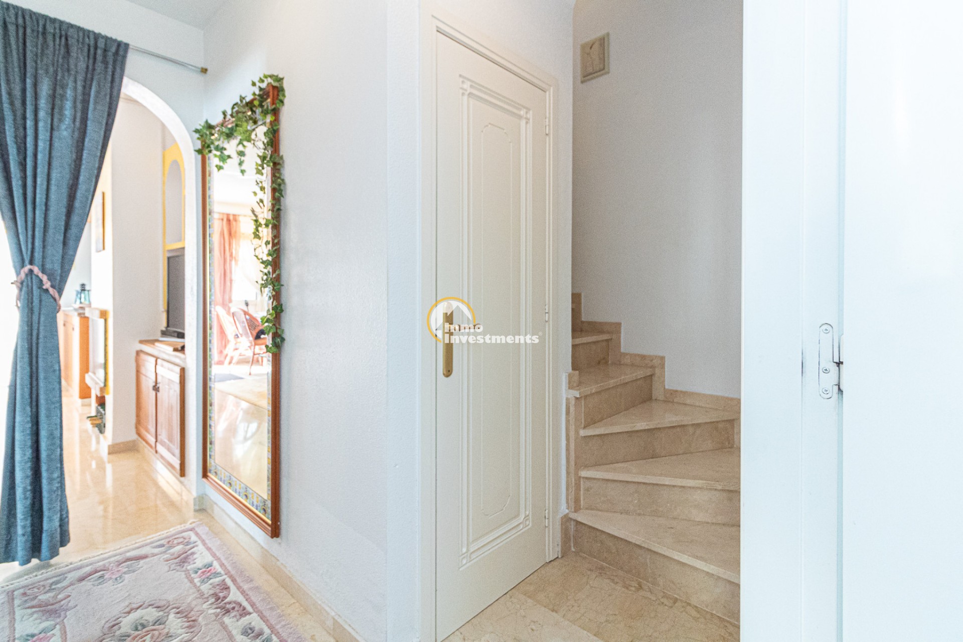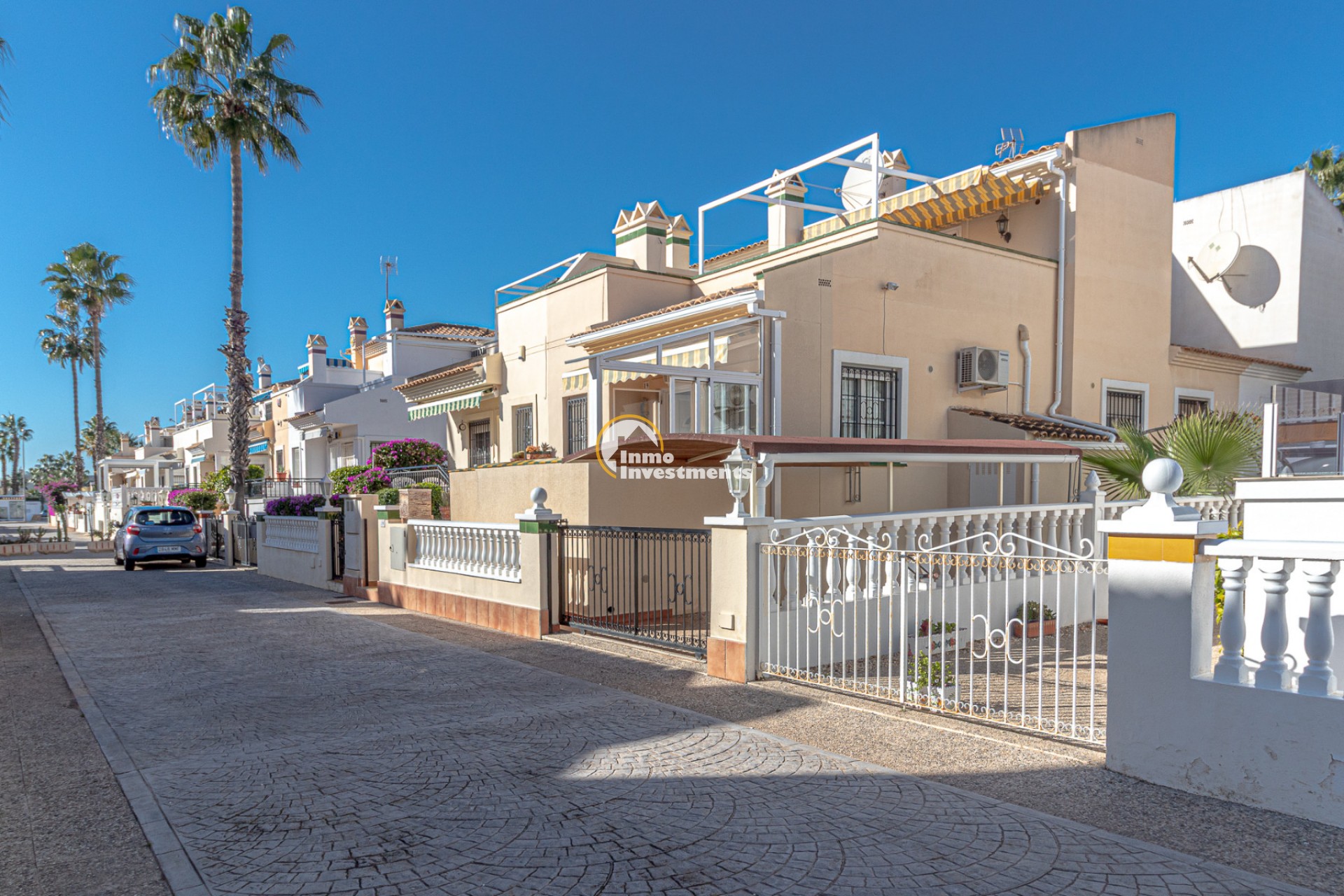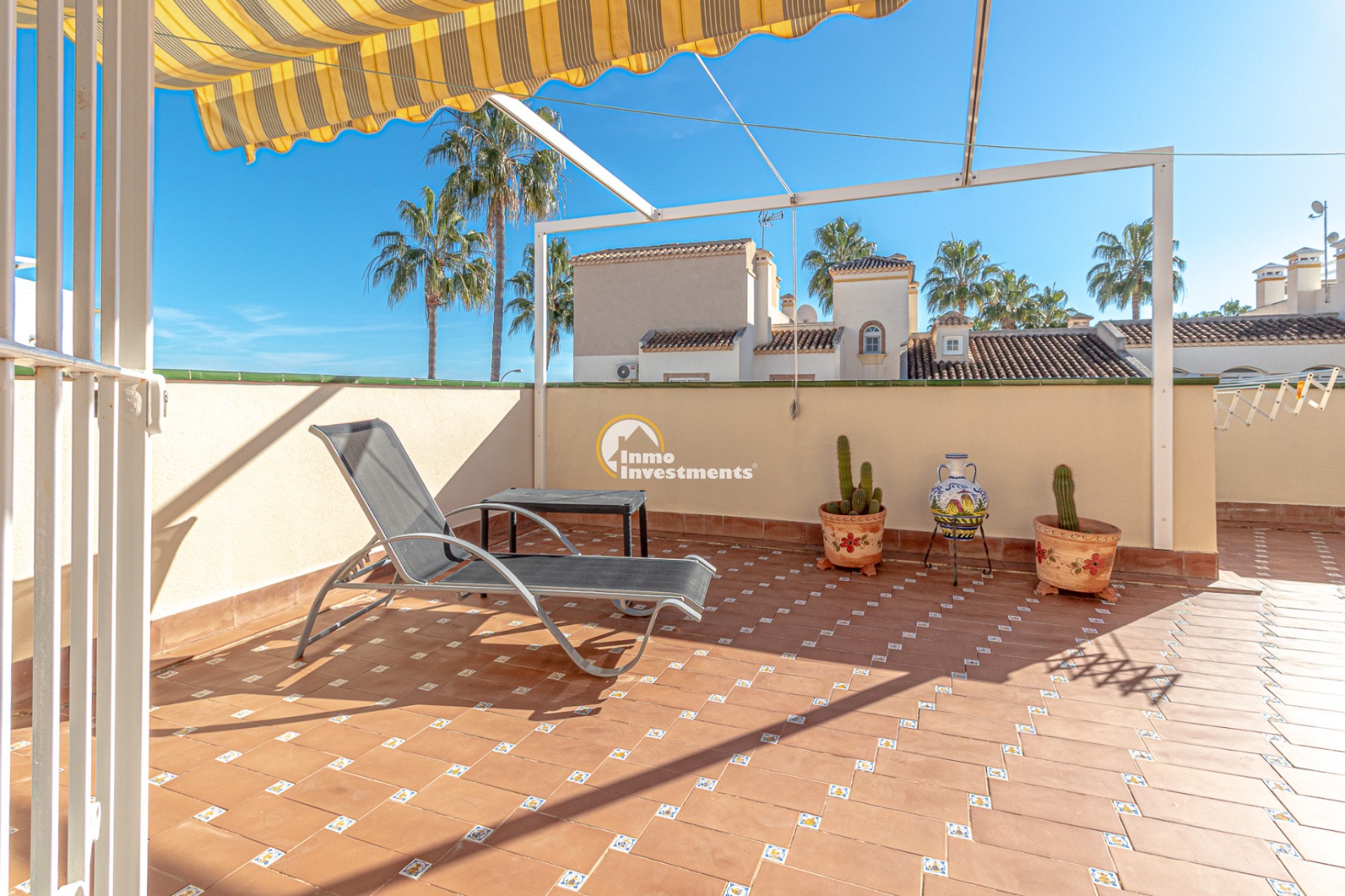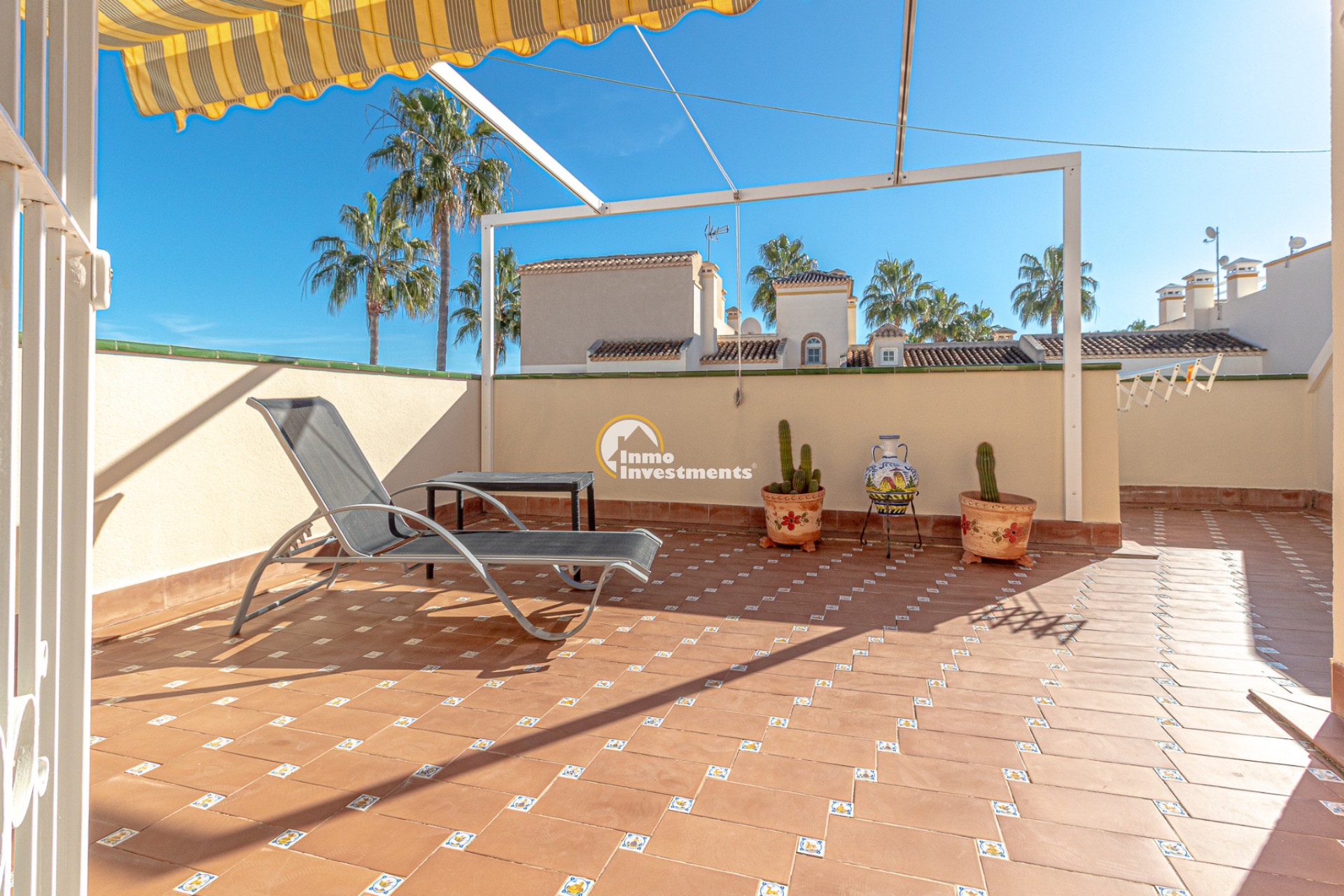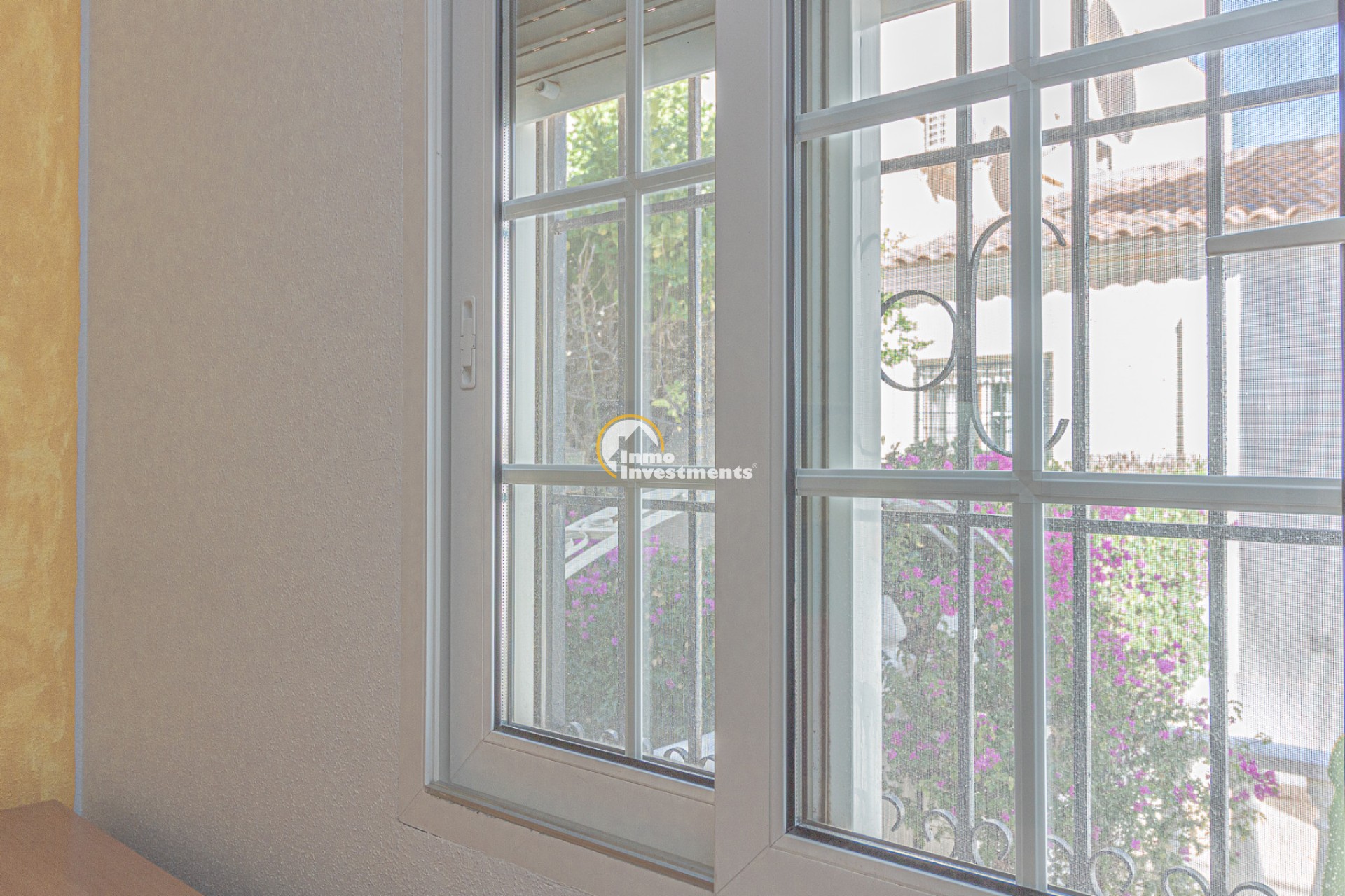 Excellent location for this spacious quad villa in the popular Residencial Jumilla complex in Playa Flamenca. The villa offers approx. 86 m² of living space over two floors, with three double bedrooms with fitted wardrobes, two bathrooms, a generous living and dining area, kitchen, sunny terrace, and storage room.