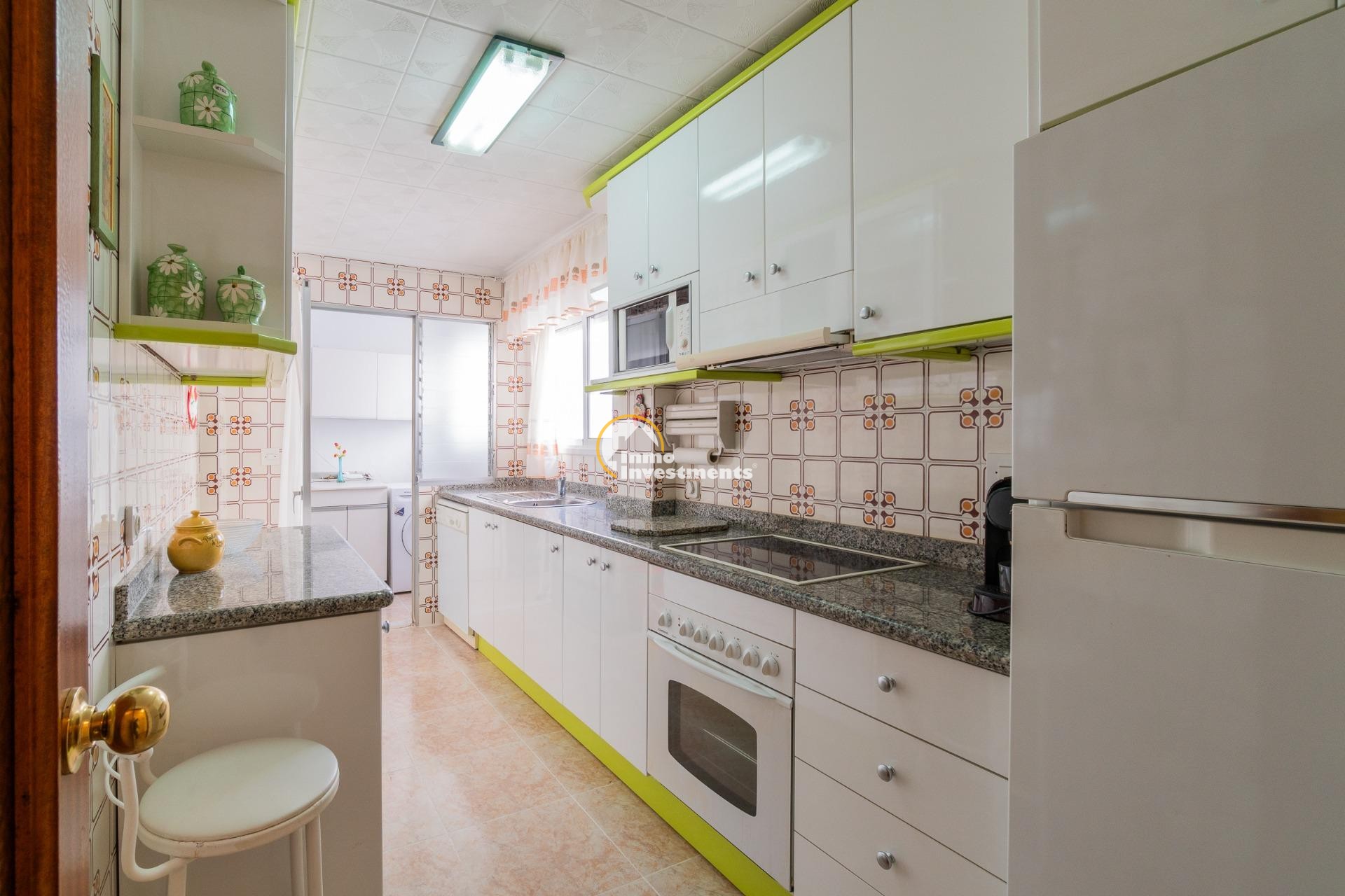 Discover this charming penthouse located in a prime area of Torrevieja, just a three-minute walk from the beautiful Playa del Cura beach.. . With a constructed area of 75 m2, this property offers partial sea views that enhance its appeal.. . It features two double bedrooms, larger than average, ideal for relaxation and family comfort.. . It also has a well-distributed full bathroom and includes a very practical laundry room that adds extra functionality to your everyday space.. . All the windows were recently replaced (2022), providing greater energy efficiency and acoustic comfort within the home.. . The building has a communal solarium where you can enjoy the sunny Mediterranean climate year-round without worrying about neighbors above, thanks to its strategic top-floor location.. . One last important detail: it's being sold fully furnished!. . This penthouse is the perfect option for enjoying the Mediterranean climate on the Costa Blanca!