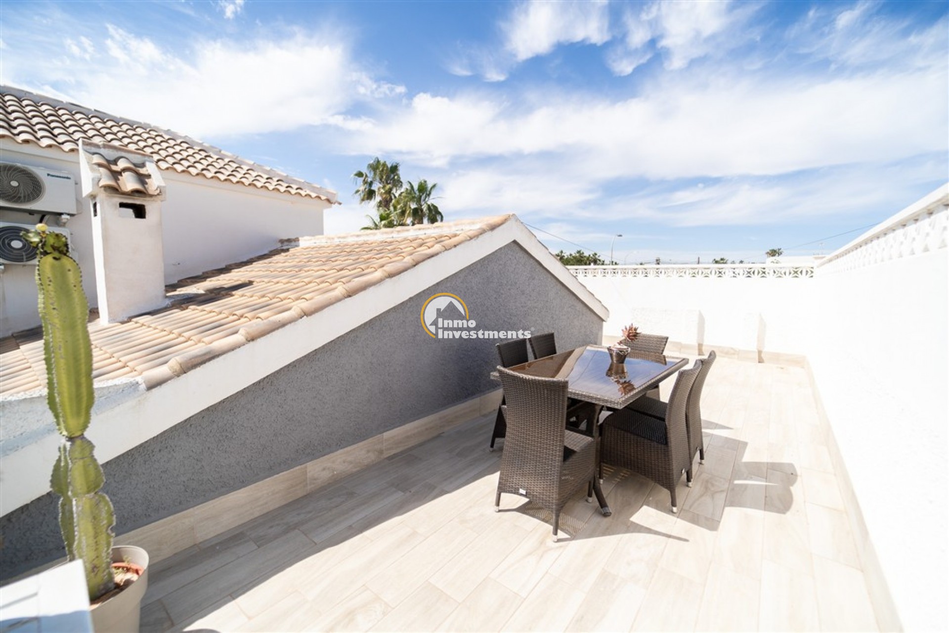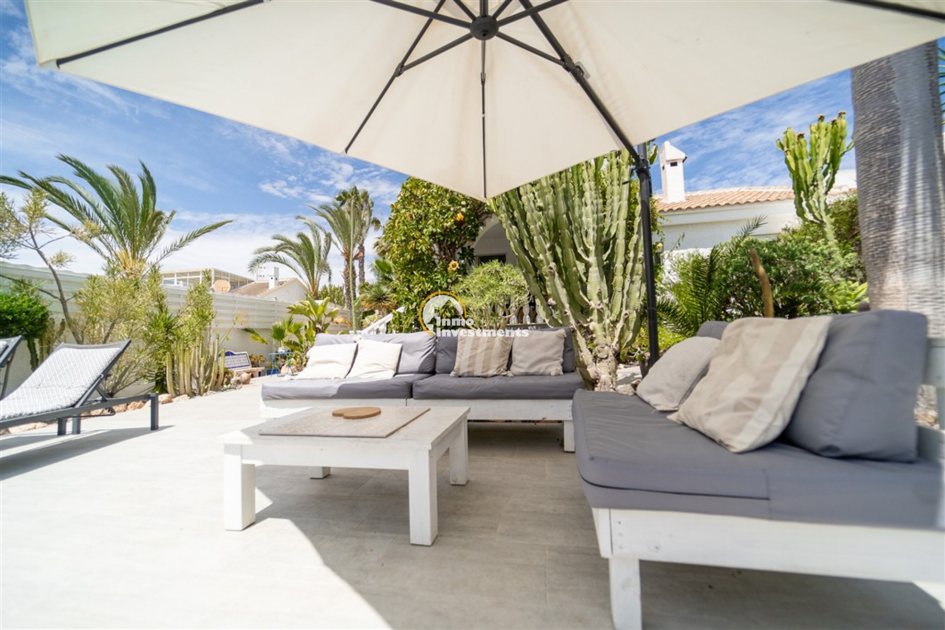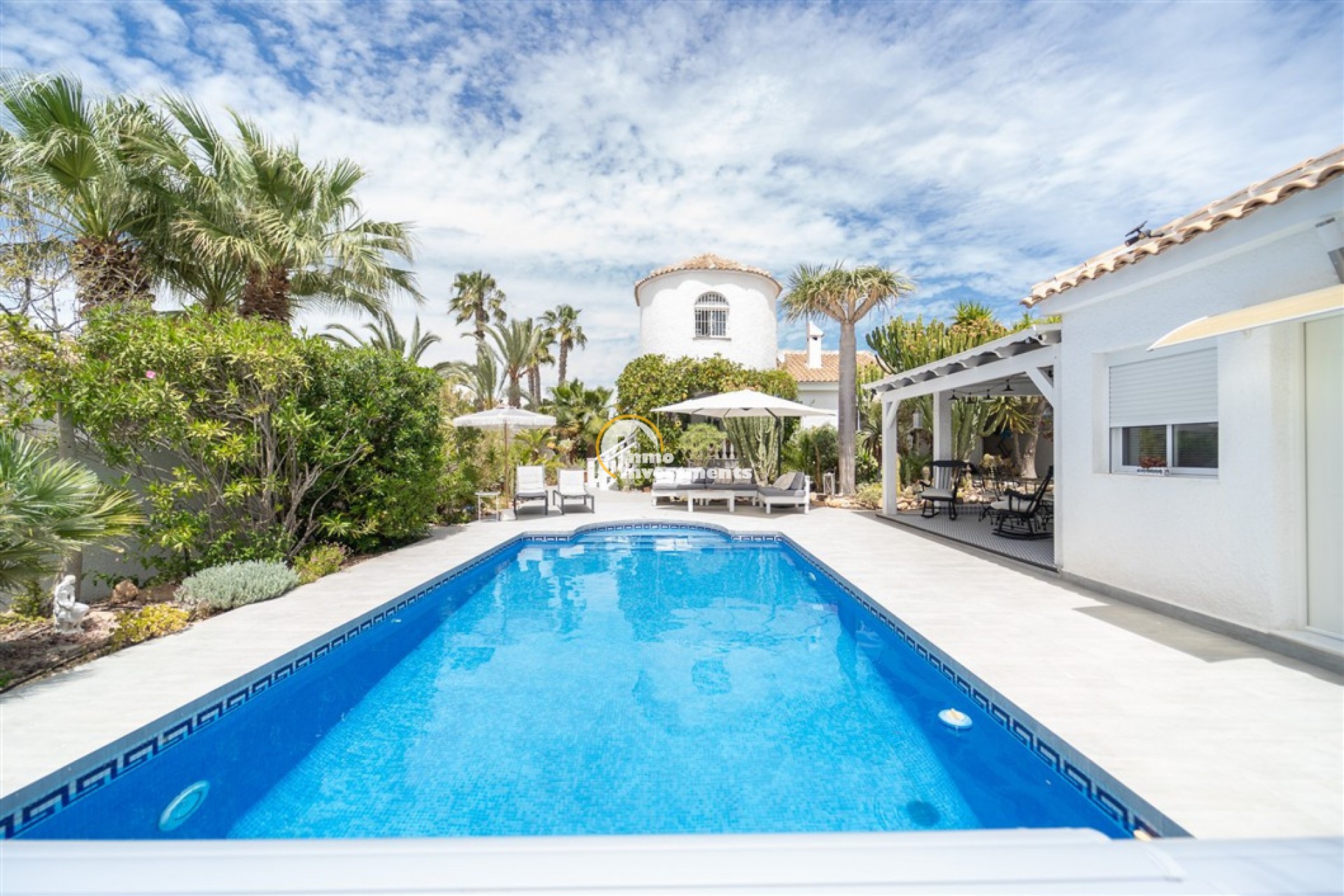 This detached villa is located in the established residential area of La Siesta and benefits from a south-facing orientation, providing good natural light throughout the day. The property offers 140 m² of built space on a 966 m² plot and includes four bedrooms, three bathrooms, and an independent fully equipped kitchen. Outside, there is a private 31 m² swimming pool, garden areas, a terrace with barbecue space, and a private garage.