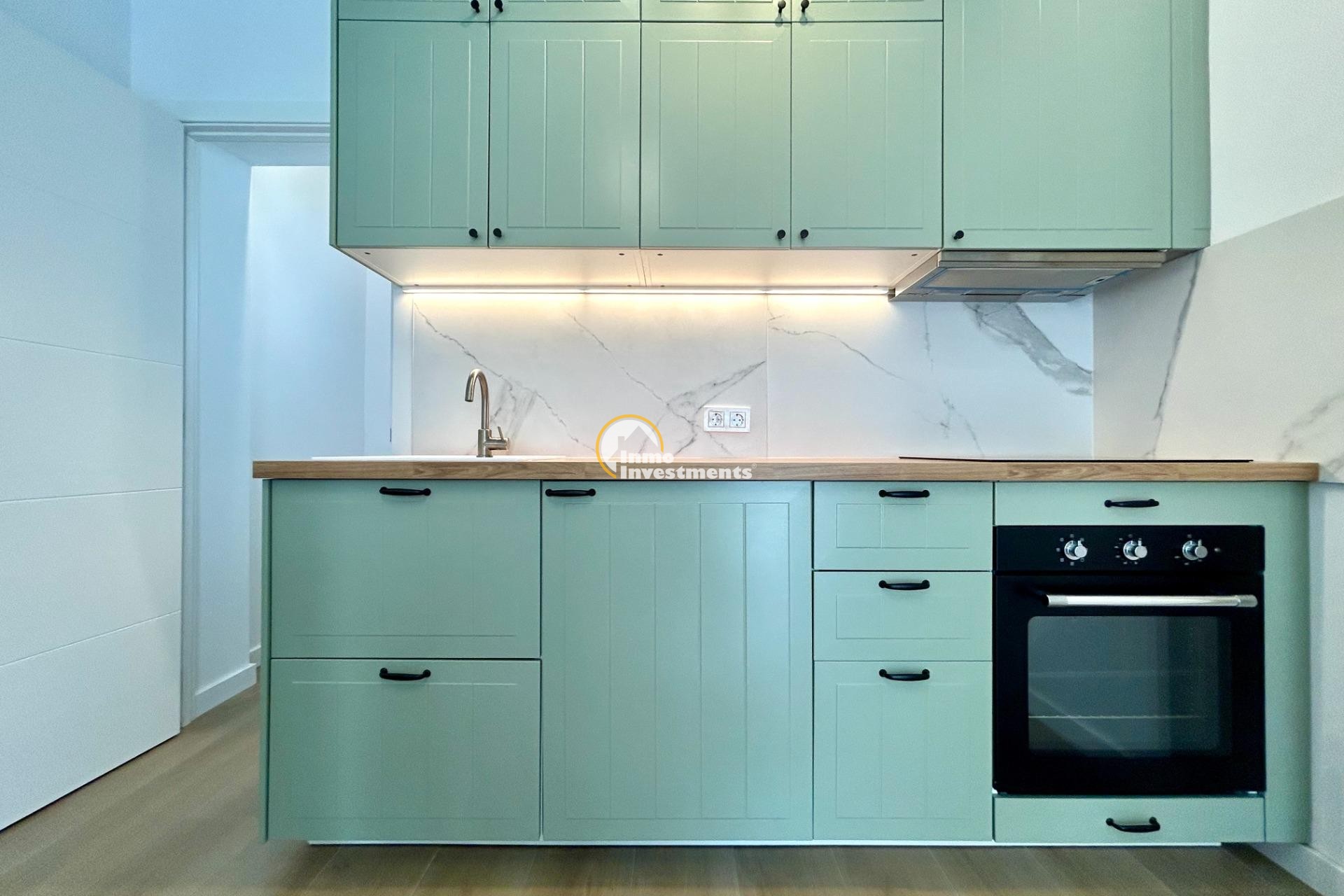 Cozy renovated apartment in Blue Hill~Ground-floor apartment for sale in the popular Blue Lagoon area.~The 38 m2 home features one bedroom, a living room with an open-plan kitchen, a fully renovated bathroom, and a large private terrace perfect for enjoying the Mediterranean climate.~The apartment was completely renovated a year ago, including:~New electrical and plumbing installations~New air conditioning~Modern kitchen equipped with new appliances~Renovated bathroom with modern finishes~New windows and doors~Separate laundry room with washing machine.~Sold fully furnished and ready to move in.~There is also a storage room in the basement, perfect for storing bicycles or other belongings.~A unique opportunity to move into a modern apartment, ready to enjoy from day one. Ideal as a permanent residence, vacation home, or investment.