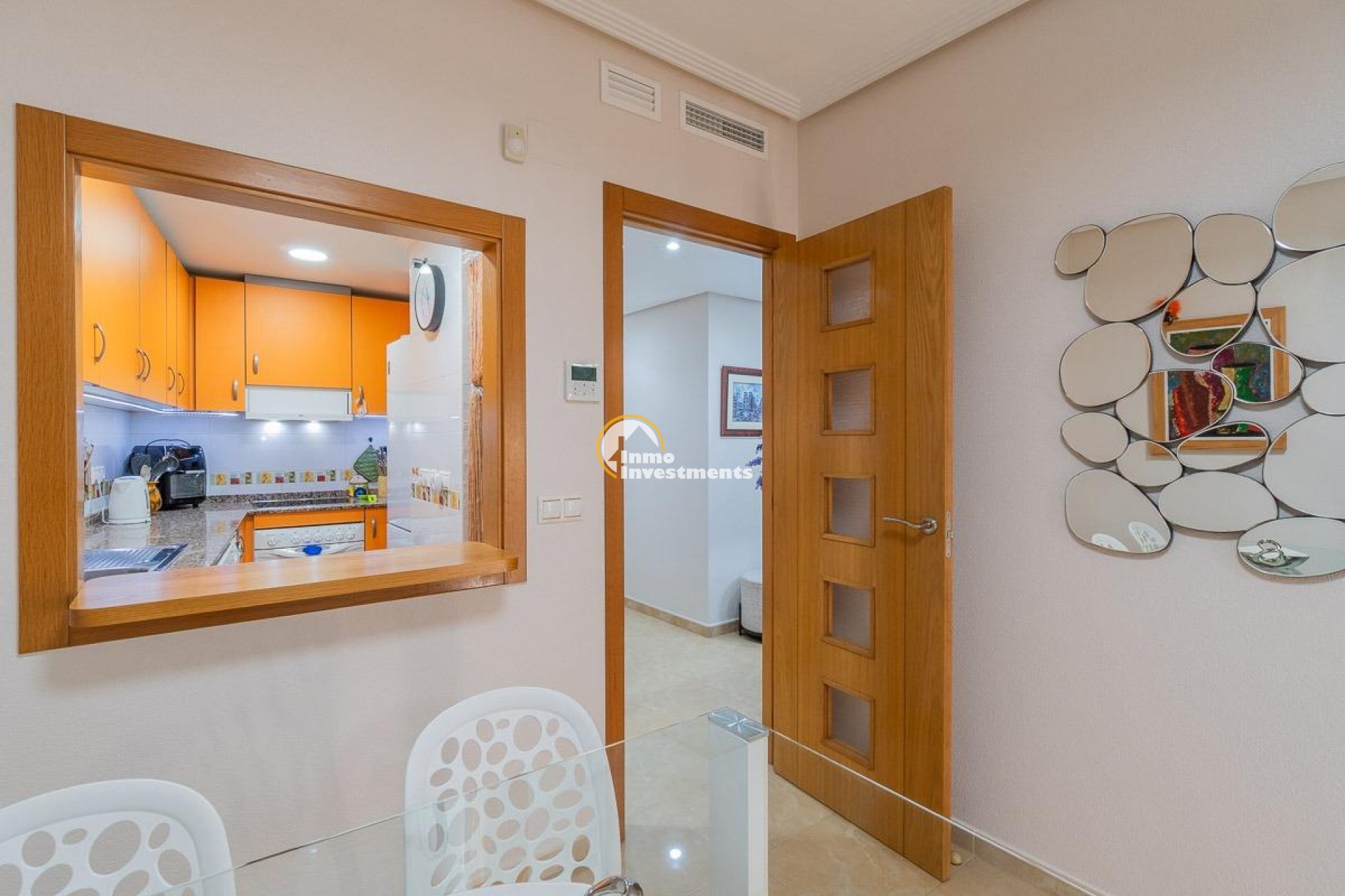Discover this magnificent apartment located in the heart of Torrevieja, just 520 meters from the sea, very close to the seafront promenade and the beaches, with all amenities within walking distance — no car needed for everyday life.. . The property offers 89 m2 of built area and a pleasant west-facing orientation, ideal for enjoying natural light and beautiful sunsets. It is ready to move into, meticulously maintained and finished with excellent qualities.. . It features two spacious double bedrooms, both with built-in wardrobes, one of them with an en-suite bathroom, providing extra comfort and privacy. In total, the apartment has two full bathrooms, perfect for daily living and hosting guests.. . The kitchen is delivered fully equipped with appliances included, ready for immediate use. The living room opens onto a closed balcony, a versatile additional space ideal as a relaxation area, home office, or reading corner all year round.. . In terms of comfort and features, the property includes:. ✔️ Hot and cold air conditioning system. ✔️ Water softener. ✔️ Alarm system. ✔️ Reinforced security door. . The building also offers a communal rooftop solarium, where you can enjoy magnificent views, perfect for relaxing outdoors and soaking up the Mediterranean sun.. . Located in a lively area surrounded by amenities:. Shopping centers and all kinds of shops. Schools. Medical centers. Green areas and tree-lined surroundings. Children’s play areas. . Excellent public transport connections are available, with nearby bus stops providing easy access throughout the city.. . An ideal home for year-round living or holiday enjoyment by the sea, with beaches, leisure, services, and the city center just a short walk away.