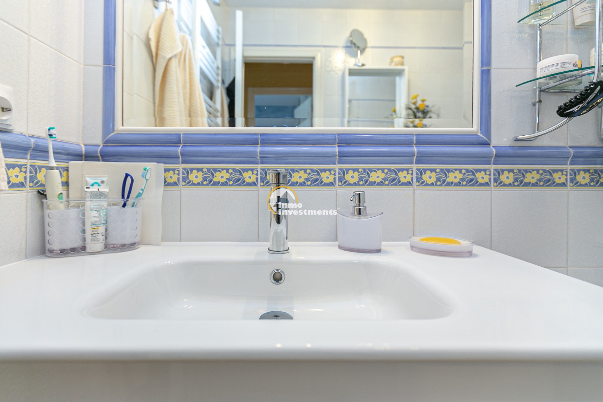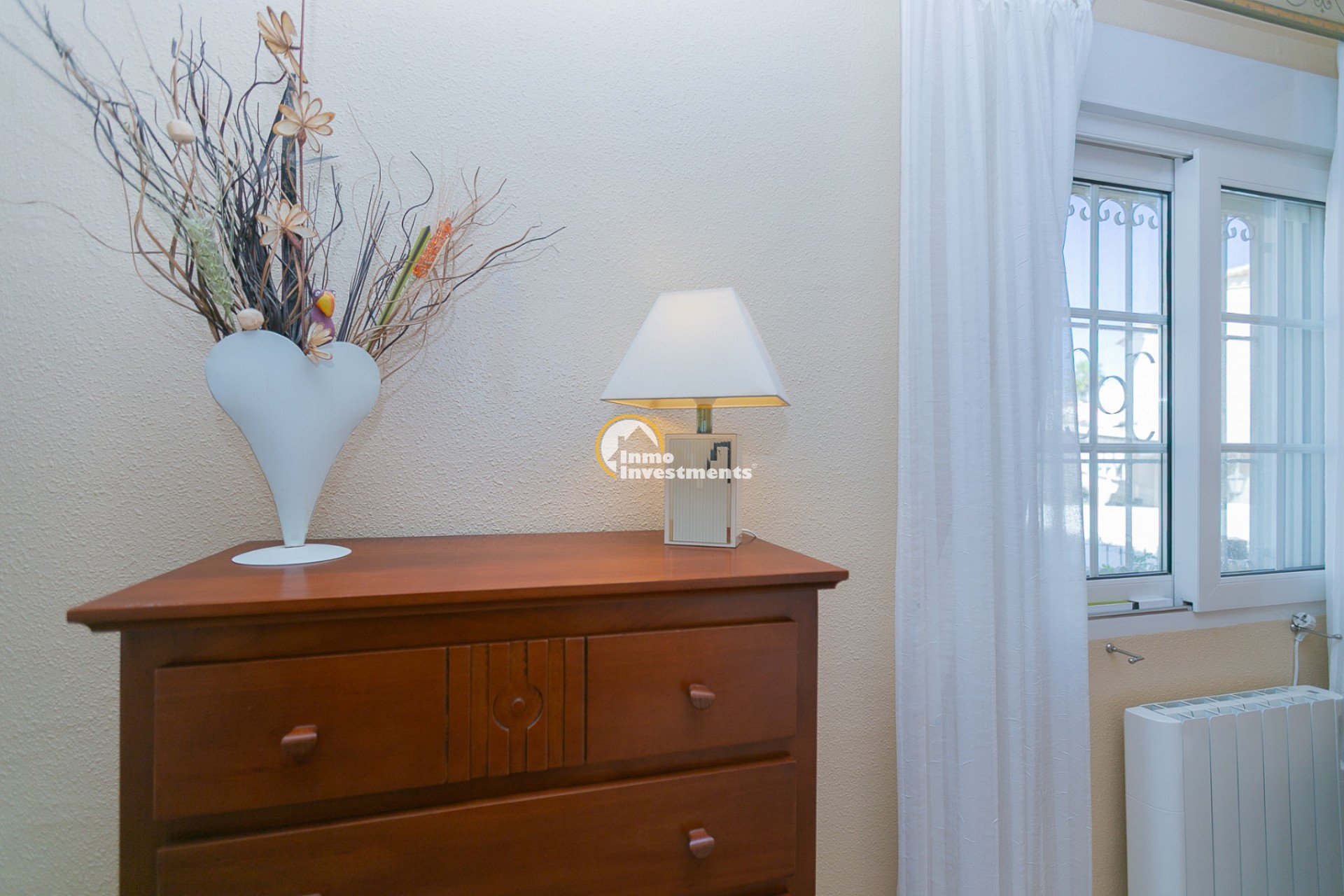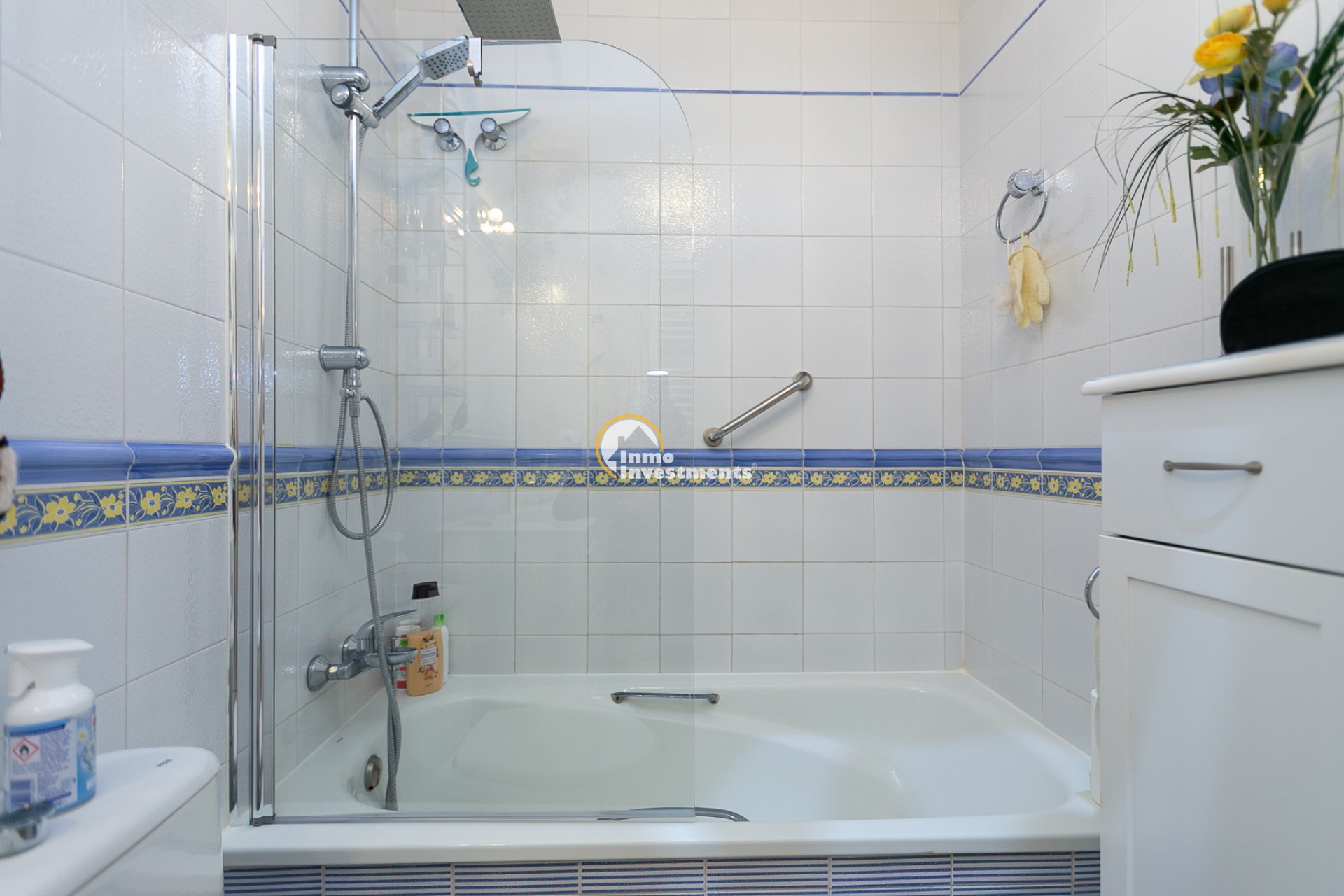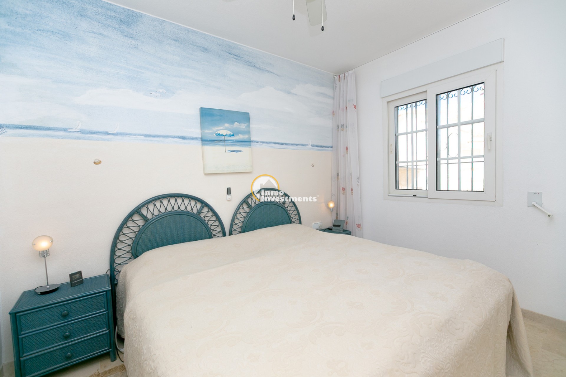 Discover this charming ground floor bungalow located in one of the most beautiful and characterful residential complexes in Playa Flamenca. A typically Mediterranean community, built in the traditional style that is no longer constructed today, with spacious green areas, palm trees and three magnificent communal swimming pools surrounded by natural grass, creating a peaceful and welcoming environment.