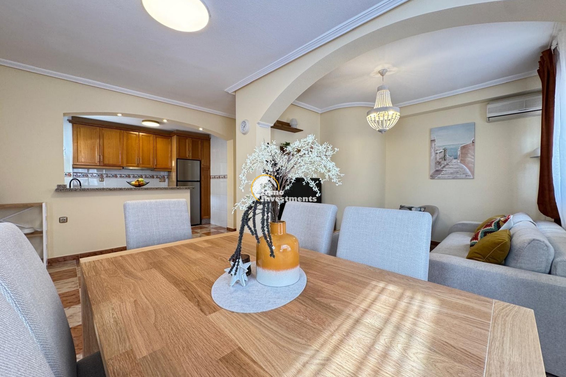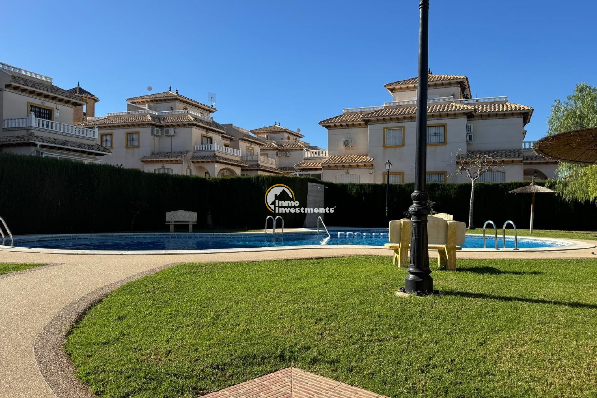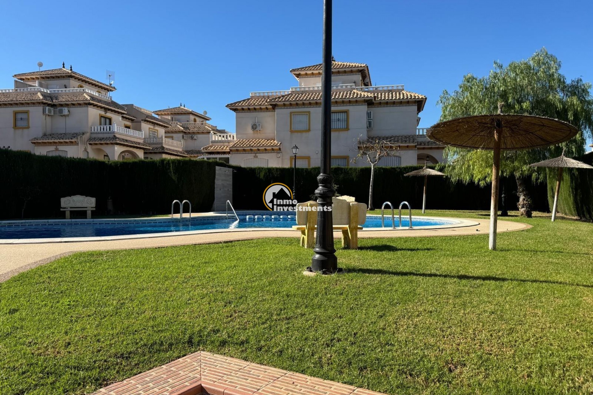 Quad villa for sale, located in a quiet and well-maintained area of Playa Golf, Lomas de Cabo Roig. The property is in excellent condition and ready to move into.The house has a built area of 92 m² and is distributed over two bedrooms , bathroom and WC. The living/dining area is spacious and could be separated into an extra bedroom if needed as is common with these San Jose quad villas . It also benefits from a private plot, private parking space, and a terrace of approximately 10 m² with access from the main bedroom.On the upper level there is a private solarium with sea views, ideal for enjoying the Mediterranean climate. The property also has air conditioning installed and access to a communal swimming pool within the residential complex. Sold fully furnished, with white goods and decorative items, as shown in the photographs. The renovation has been carried out using quality materials, creating a modern, comfortable and functional living space. With its private terrace, solarium and access to communal facilities, the property is well suited as a permanent residence, holiday home or investment. Located in the Playa Golf II area, a short drive to the La Zenia Boulevard and the local beaches of La Zenia, Cabo Roig and Campoamor. Local bars, restaurants and supermarket are within walking distance. Contact Inmo Investments today for a viewing.