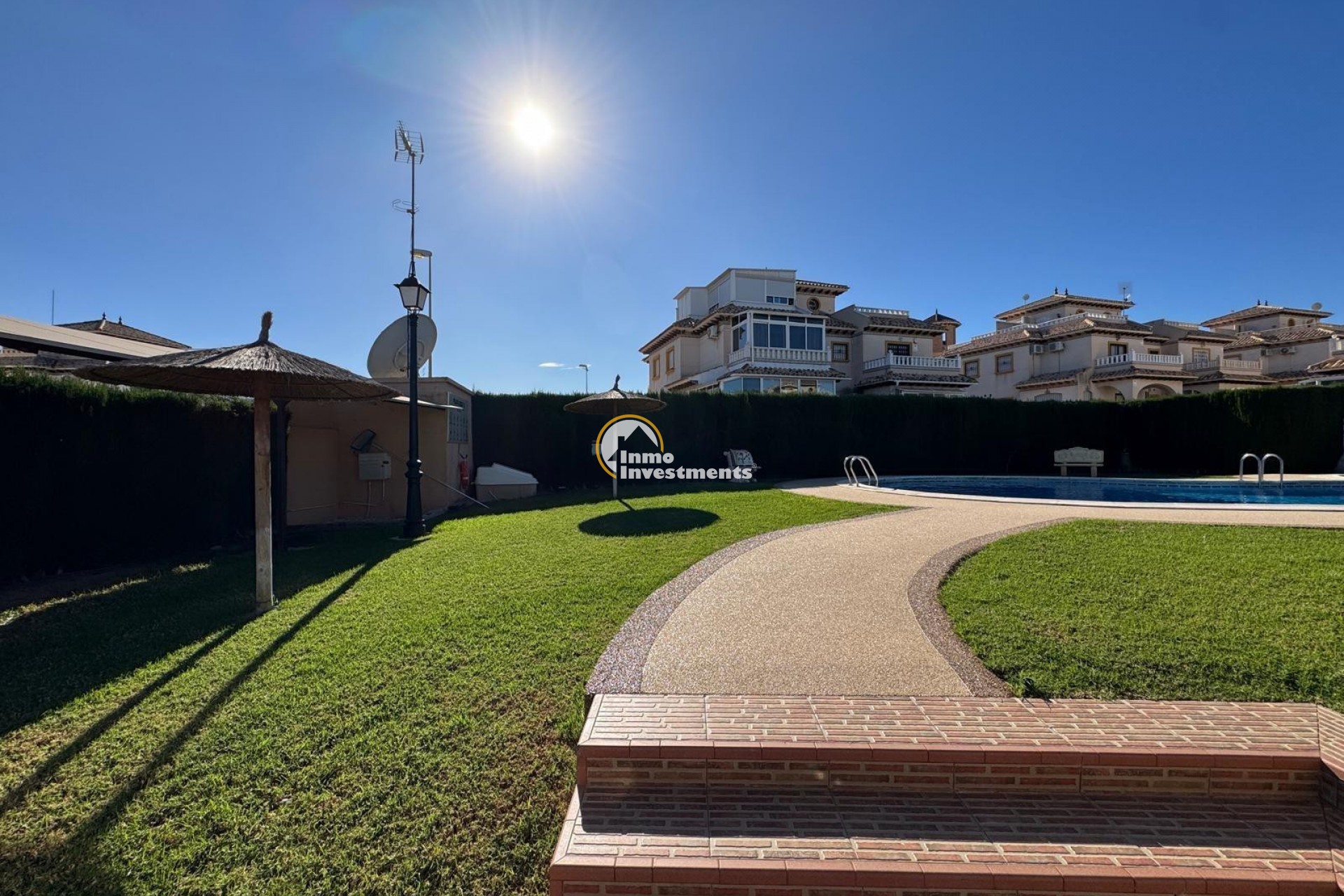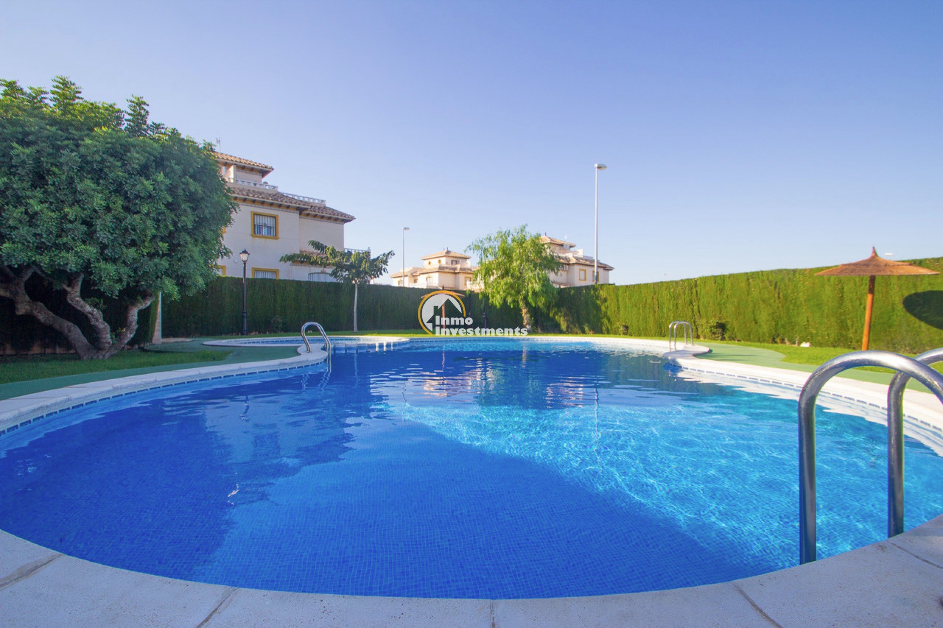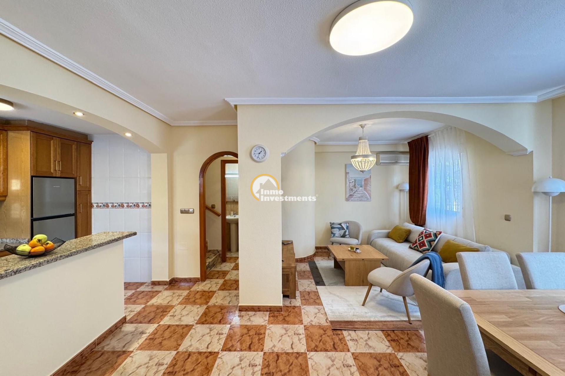 Quad villa for sale, located in a quiet and well-maintained area of Playa Golf, Lomas de Cabo Roig. The property is in excellent condition and ready to move into.The house has a built area of 92 m² and is distributed over two bedrooms , bathroom and WC. The living/dining area is spacious and could be separated into an extra bedroom if needed as is common with these San Jose quad villas . It also benefits from a private plot, private parking space, and a terrace of approximately 10 m² with access from the main bedroom.On the upper level there is a private solarium with sea views, ideal for enjoying the Mediterranean climate. The property also has air conditioning installed and access to a communal swimming pool within the residential complex. Sold fully furnished, with white goods and decorative items, as shown in the photographs. The renovation has been carried out using quality materials, creating a modern, comfortable and functional living space. With its private terrace, solarium and access to communal facilities, the property is well suited as a permanent residence, holiday home or investment. Located in the Playa Golf II area, a short drive to the La Zenia Boulevard and the local beaches of La Zenia, Cabo Roig and Campoamor. Local bars, restaurants and supermarket are within walking distance. Contact Inmo Investments today for a viewing.