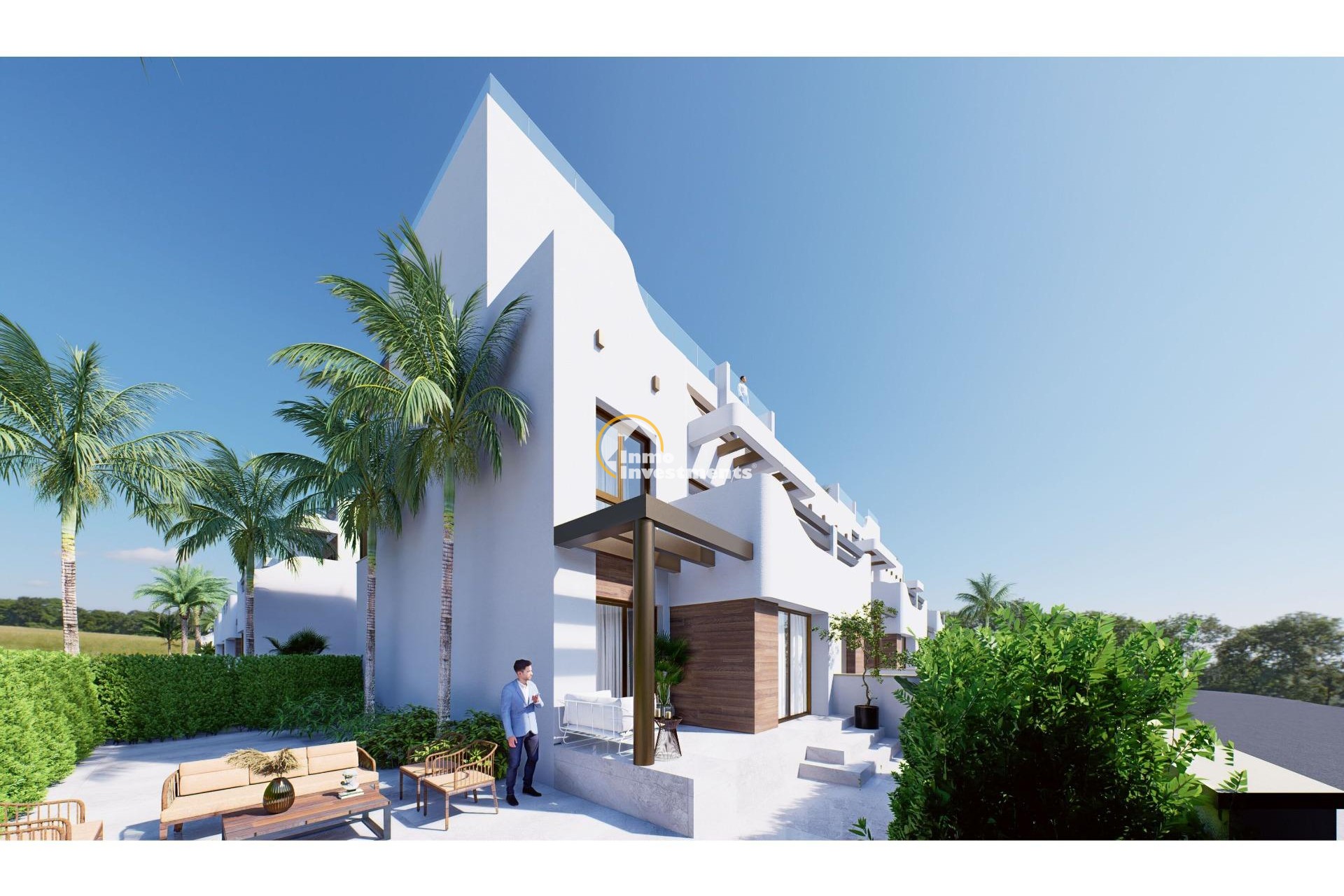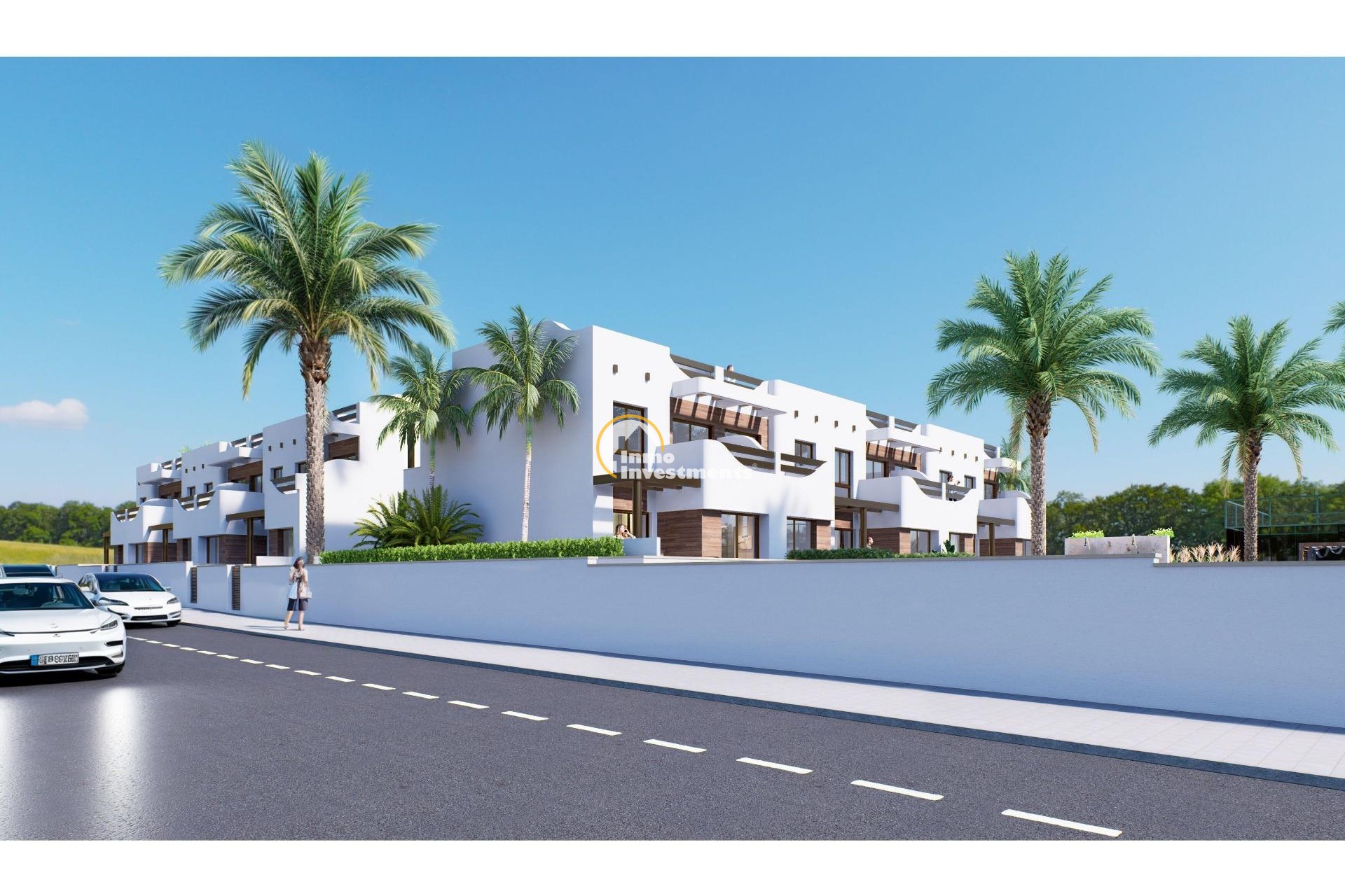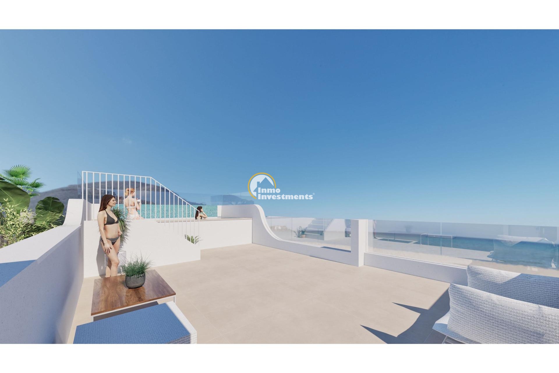 Discover the place where luxury, sports and location meet. This ground floor bungalow under construction offers you the opportunity to live just 100 meters from the beach in the coveted area of El Mojón, Pilar de la Horadada. With a modern design and high-quality details, this property is ideal for those looking to enjoy Mediterranean lifestyle.~~Property Details~Built Area: 169.53 m2.~Private Terrace: A spacious area of 75 m2 to relax, sunbathe or share with your loved ones.~Rooms and Bathrooms: Two large double bedrooms and two modern bathrooms designed for your utmost comfort.~Contemporary Kitchen: Fully equipped with elegant finishes such as porcelain floors and white lacquered interior carpentry.~Amenities and Key Features~Southwest Orientation: Enjoy natural light all day long while waking up to spectacular sea views.~Climate Control: Centralized air conditioning (cooling/heating) along with heating for your well-being at any time of year.~Community Pool & Paddle Courts: Relax by the pool or enjoy sporting moments in modern facilities within this residence.~Parking Space Included : Includes private garage space plus additional parking available for another vehicle .~nIdeal Location ~situated close shopping centers hospitals supermarkets ,and all essential services ;this bungalo w combines tranquility living near seafront convenience having everything reach out .~an Intelligent Investment ~the perfect choice either permanent home unforgettable vacation rental potential returns ! don’t miss chance step away ocean property has it ALL.