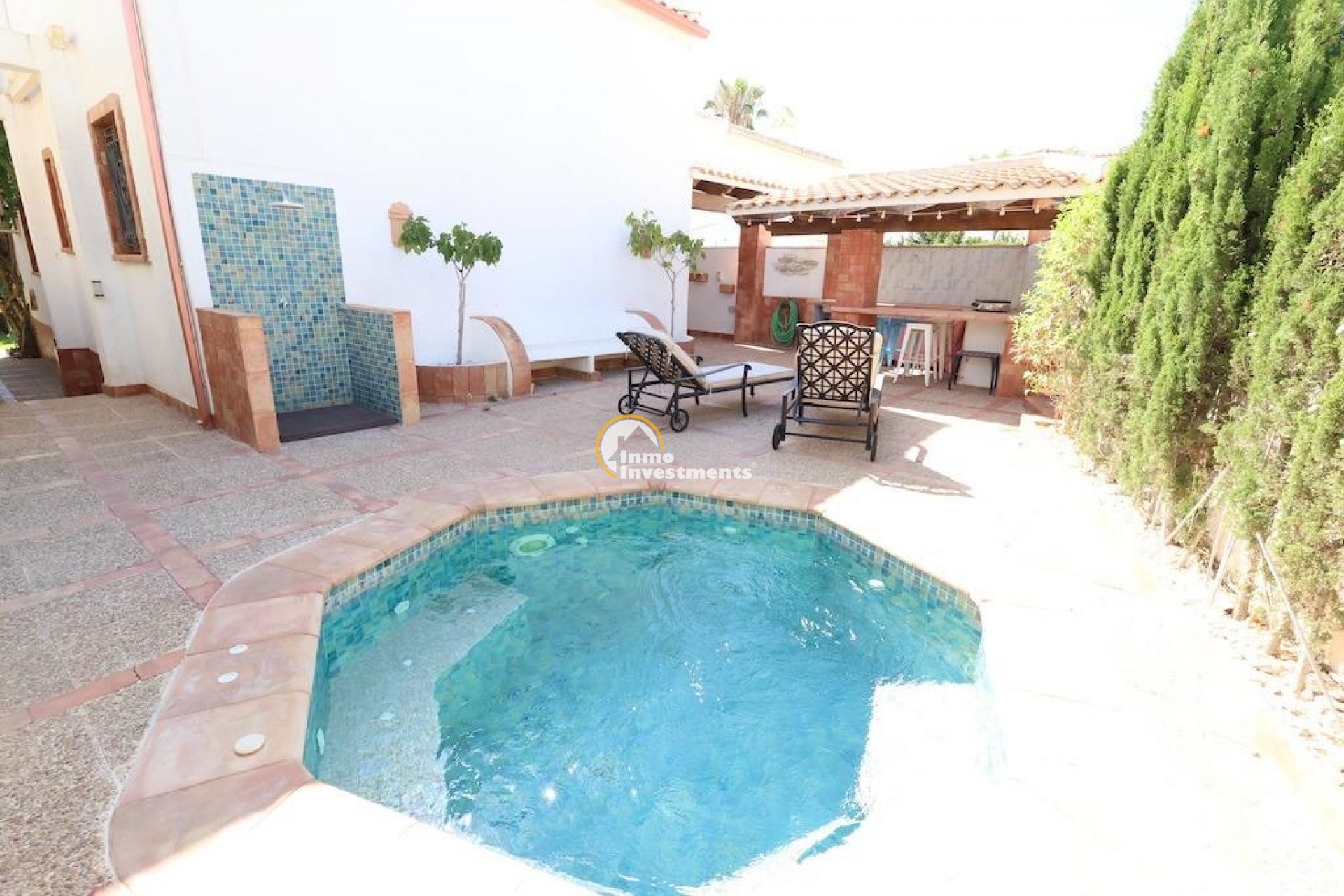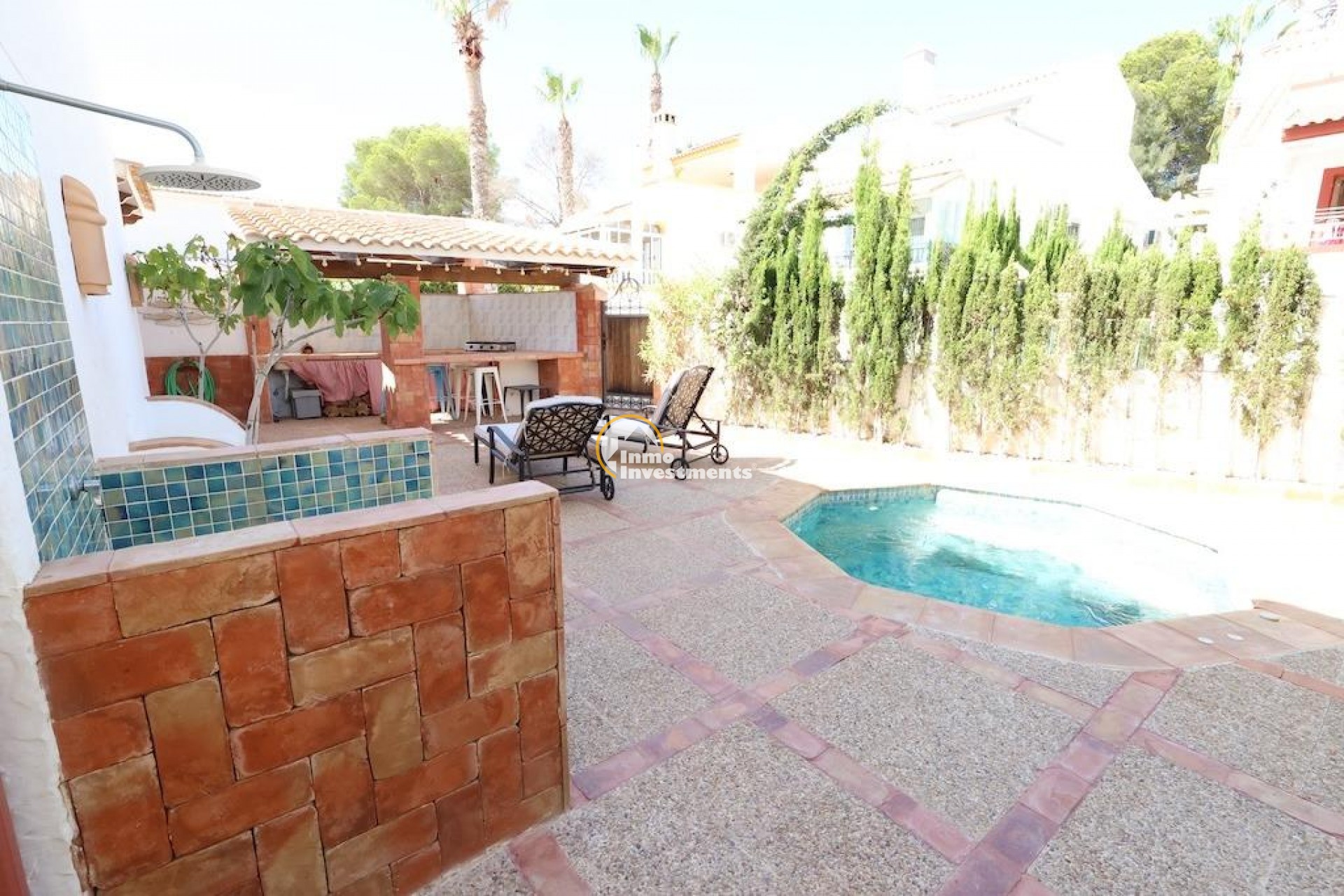 Detached villa located in one of the best areas of Villamartín, just a few meters from the entrance to the golf course. With a constructed area of 189 m2 spread over two floors plus a basement, and a 240 m2 plot, this property offers spaciousness, comfort, and excellent orientation.~~The home has a total of 4 bedrooms and 3 bathrooms. On the ground floor, we find a bright, generously sized living-dining room, a spacious, fully equipped independent kitchen, a bedroom, and a full bathroom. Upstairs is the master bedroom with a dressing room, en-suite bathroom with sauna, and a large terrace with unobstructed views.~~The basement, with independent access, has two additional bedrooms, a full bathroom, and a second living room, ideal for guests or as an additional private space.~~Outside, the property offers a private garden, driveway, barbecue area, and a relaxing jacuzzi located at the rear, perfect for enjoying the Mediterranean climate.~~It is sold furnished and equipped with air conditioning. An ideal home for both permanent residence and vacation, in a prime location close to golf courses, amenities, and beaches.