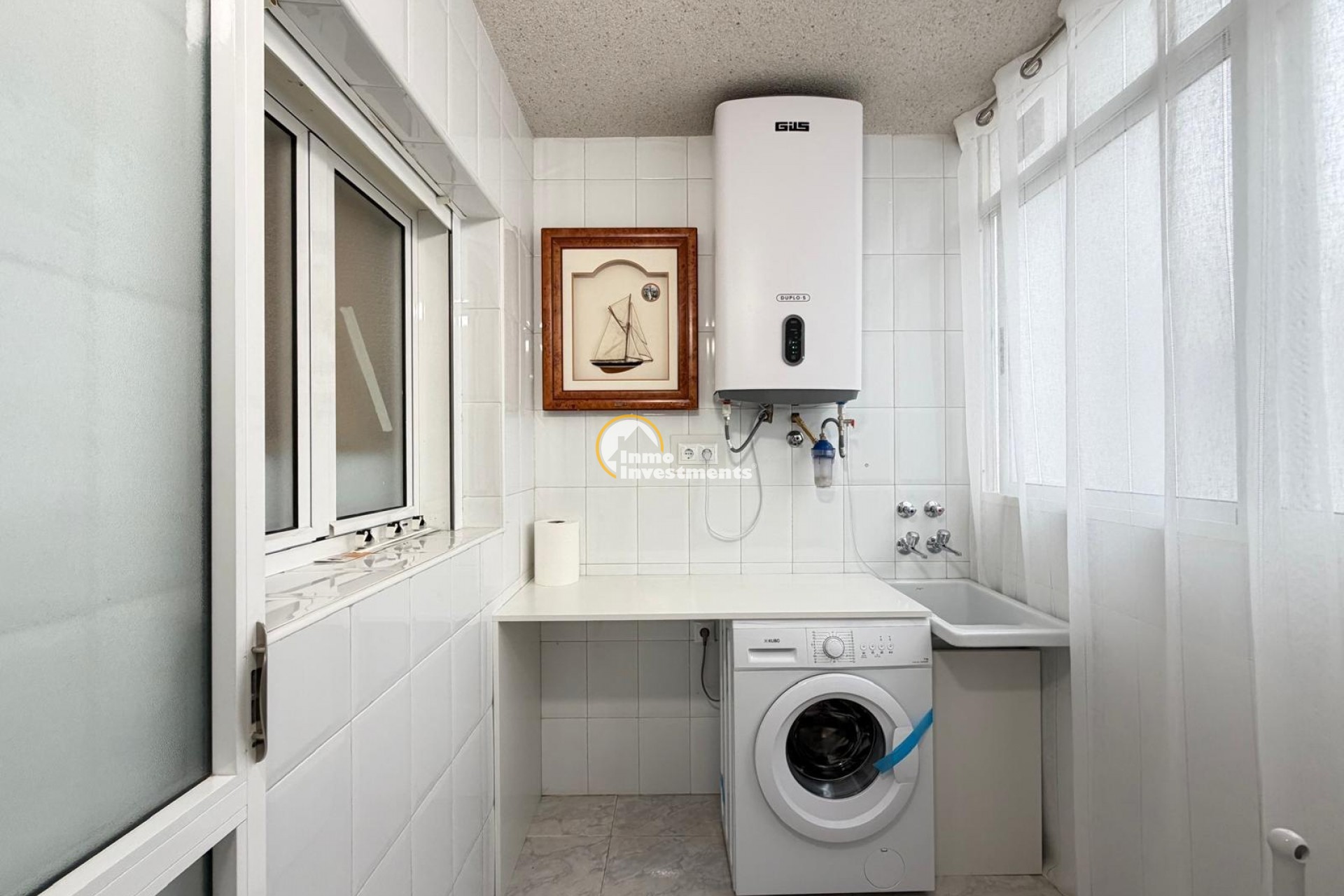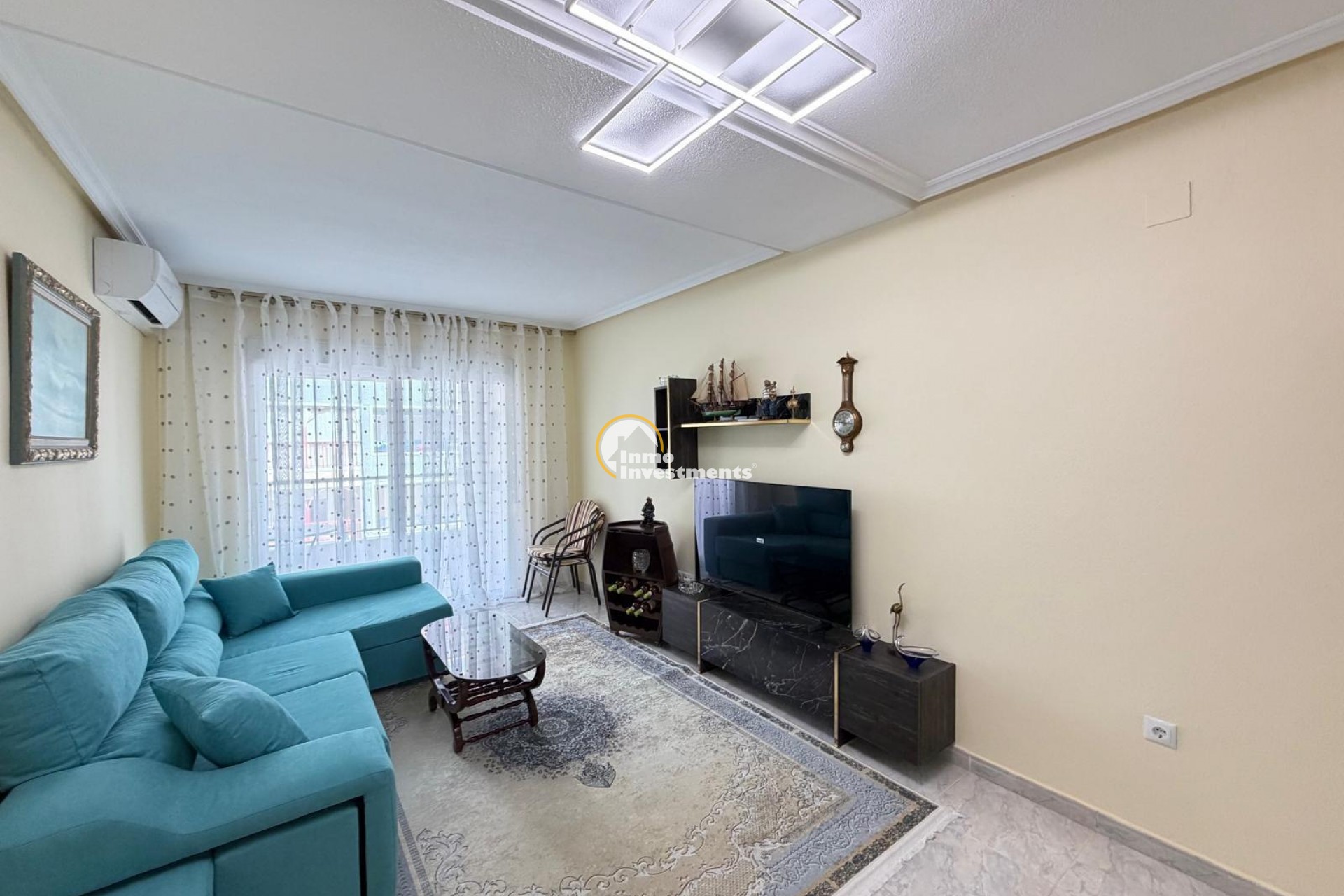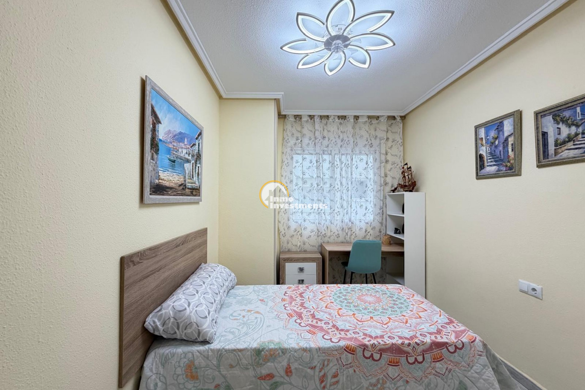 Spacious and elegant apartments for sale located just 150 meters from Playa del Cura, the main beach of Torrevieja. An excellent opportunity both to live by the sea and to invest.~~???? Main features:~• Total area: 107 m2~• Distribution: 3 bedrooms and 2 bathrooms~• Condition: after aesthetic renovation~• Views: side sea views~• Distance to the beach: 150 meters~~The property stands out for its spaciousness and brightness.~It has air conditioning, ensuring comfort throughout the year.~~It is sold furnished and equipped with appliances, as shown in the photographs, ready to move in.~~???? Privileged location:~~Its proximity to the main beach and the promenade makes it a highly sought-after property. In the surrounding area, you will find restaurants, cafes, supermarkets, and all necessary services.~~Ideal for:~• permanent residence~• second home~• vacation or long-term rental~~A property with an excellent location and great rental potential.