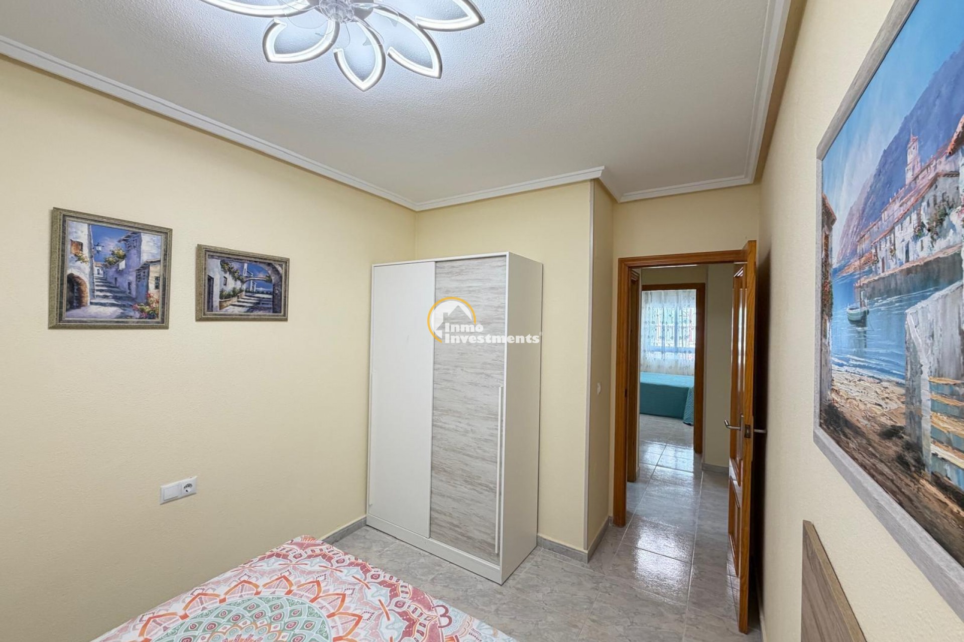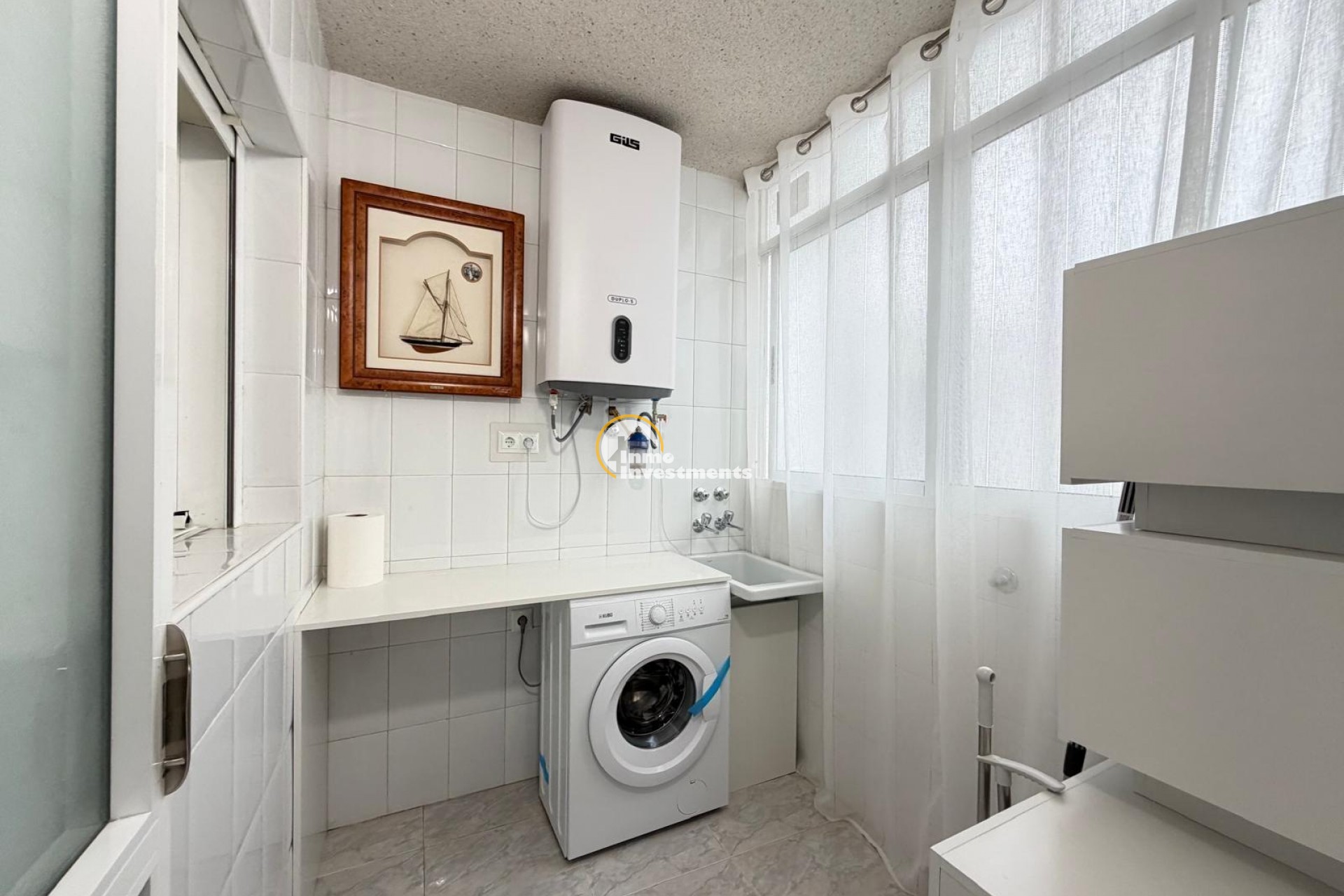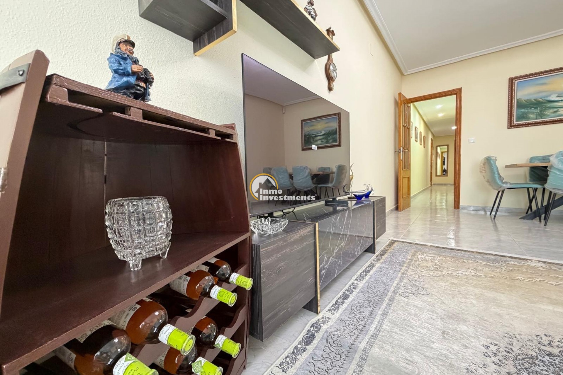 Spacious and elegant apartments for sale located just 150 meters from Playa del Cura, the main beach of Torrevieja. An excellent opportunity both to live by the sea and to invest.~~???? Main features:~• Total area: 107 m2~• Distribution: 3 bedrooms and 2 bathrooms~• Condition: after aesthetic renovation~• Views: side sea views~• Distance to the beach: 150 meters~~The property stands out for its spaciousness and brightness.~It has air conditioning, ensuring comfort throughout the year.~~It is sold furnished and equipped with appliances, as shown in the photographs, ready to move in.~~???? Privileged location:~~Its proximity to the main beach and the promenade makes it a highly sought-after property. In the surrounding area, you will find restaurants, cafes, supermarkets, and all necessary services.~~Ideal for:~• permanent residence~• second home~• vacation or long-term rental~~A property with an excellent location and great rental potential.