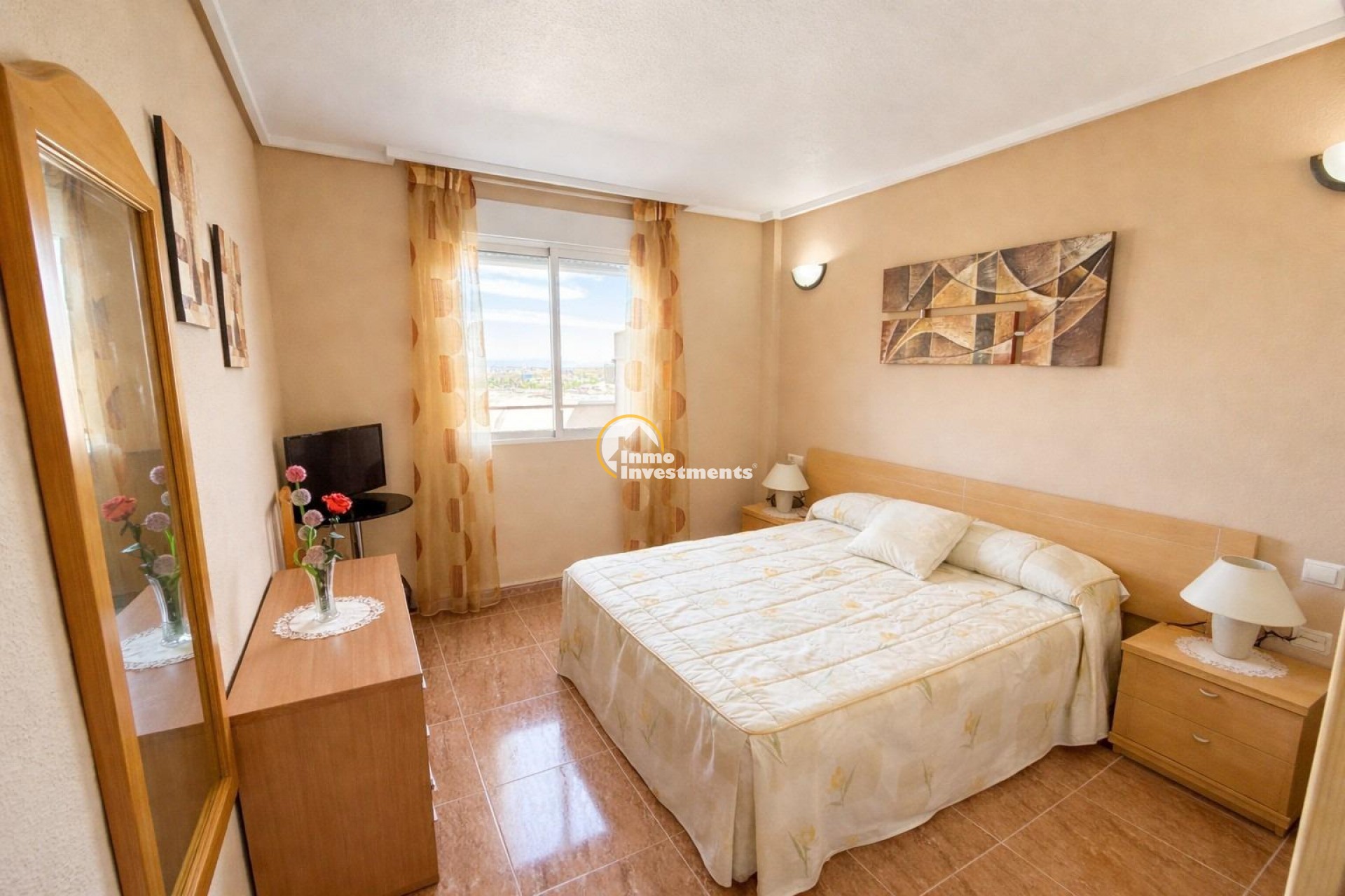 Penthouse apartment in Torrevieja with 2 bedrooms and a bright living space. The property features a large private terrace, ideal for outdoor use. Located in a community with swimming pool and well-maintained communal areas. A parking space is included in the price.