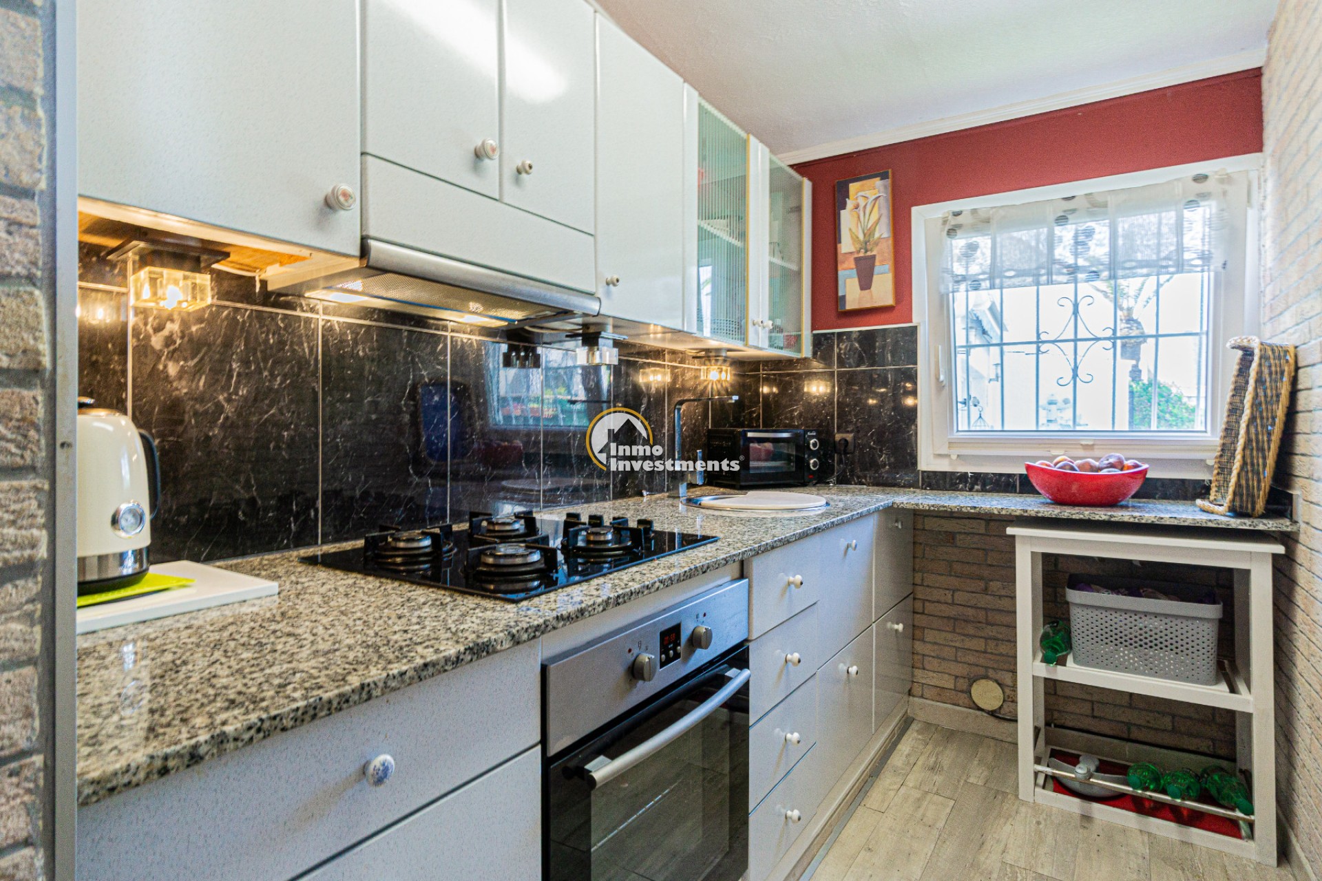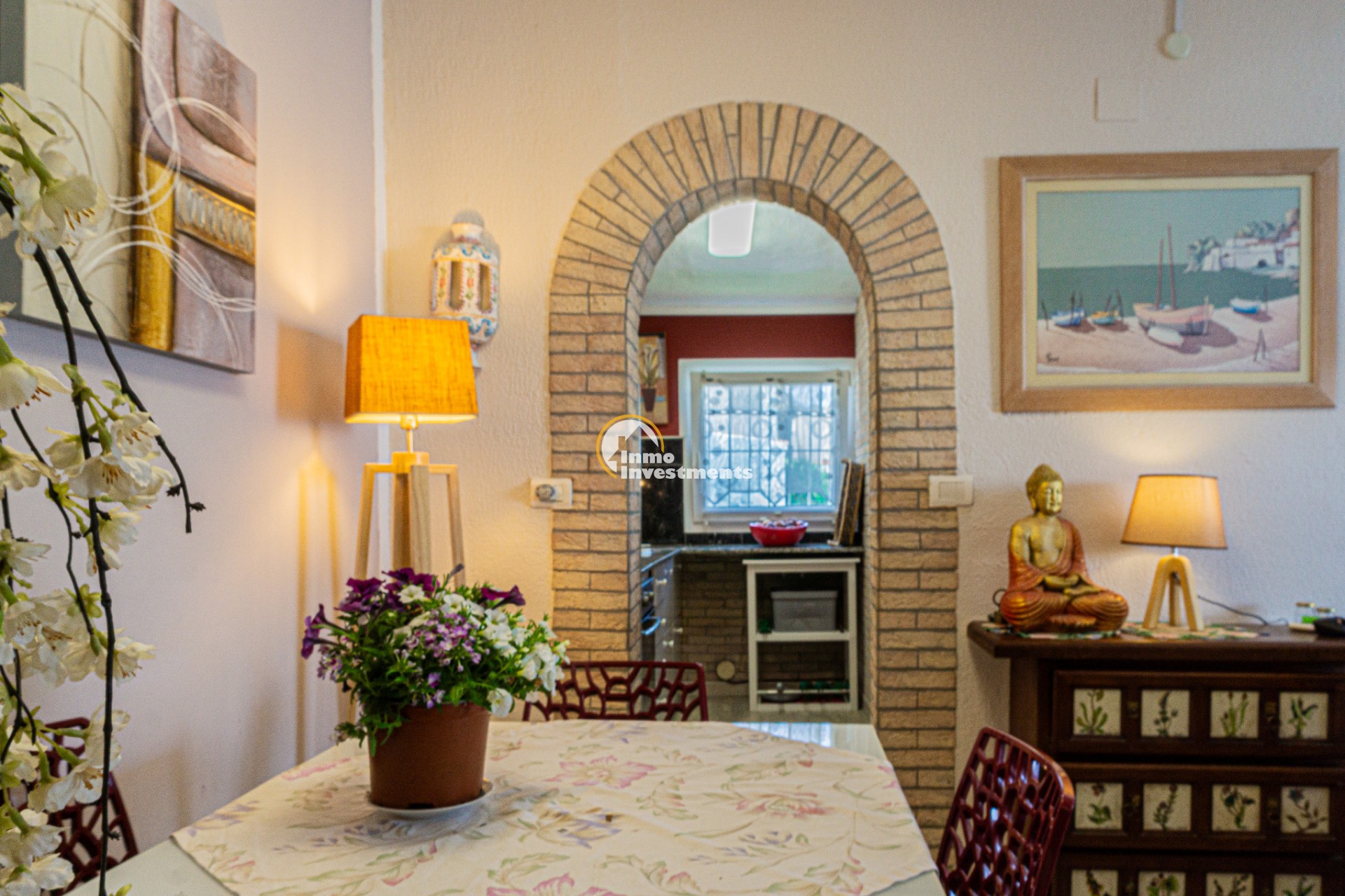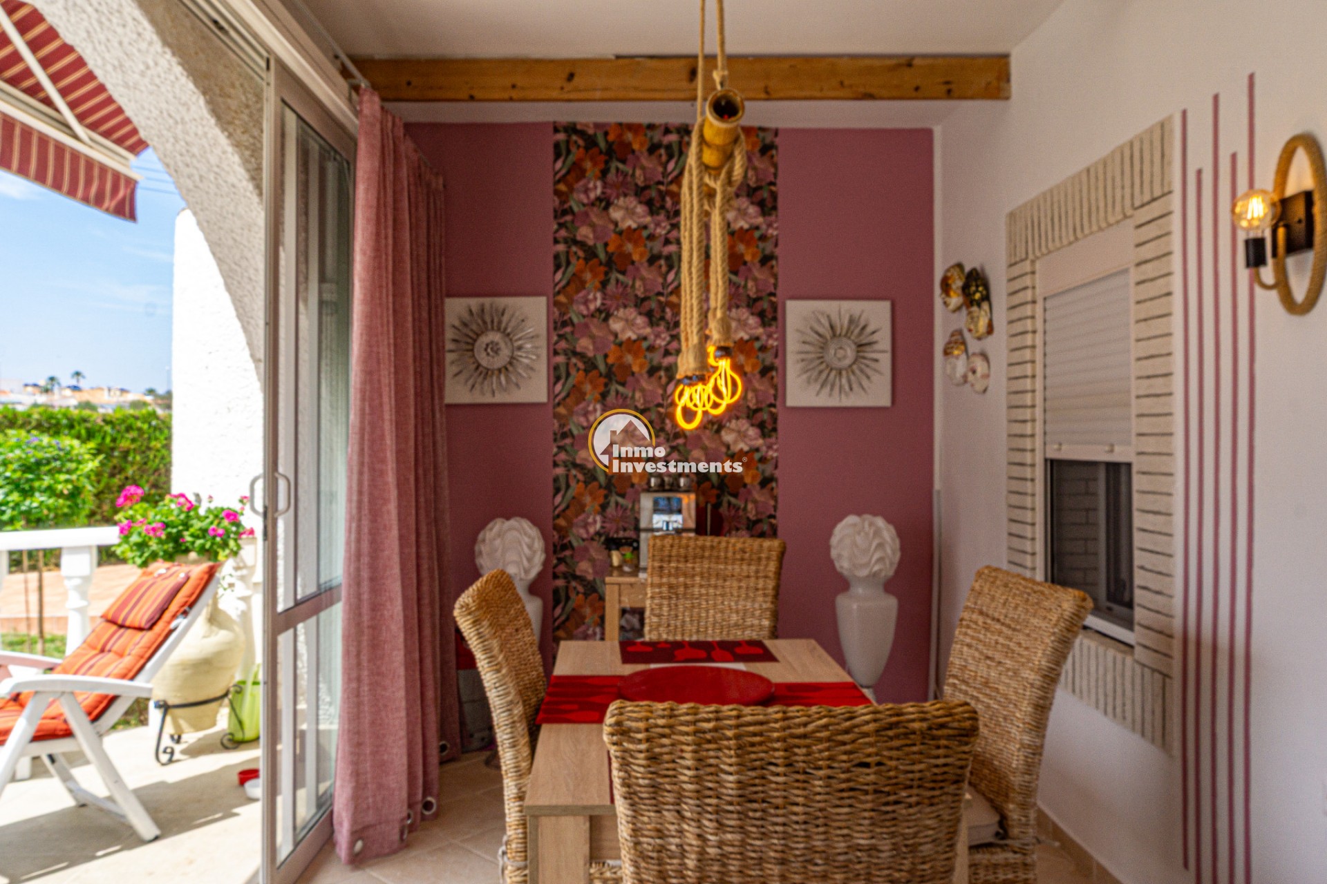 Detta charmiga radhus i quad-stil ligger i ett plan och har ett utmärkt läge nära lokala bekvämligheter och de vackra stränderna vid Orihuela Costa. Med en boyta på 66,45 m² är bostaden rullstolsanpassad och erbjuder två sovrum, ett familjebadrum, ett kök, ett rymligt vardagsrum och en separat matsal med stora fönster som vetter mot en kaklad terrass. Det privata solariumet erbjuder gott om plats för solbad och har praktiska förvaringsutrymmen. Beläget i ett lugnt område omgivet av välskötta gröna trädgårdar. Fastigheten har inte tillgång till en gemensam pool, vilket håller föreningsavgiften låg. Däremot ligger den populära offentliga poolen och restaurangen Las Chismosas bara ett par hundra meter bort – perfekt för sommardagar. Missa inte denna möjlighet – kontakta vårt team redan idag!