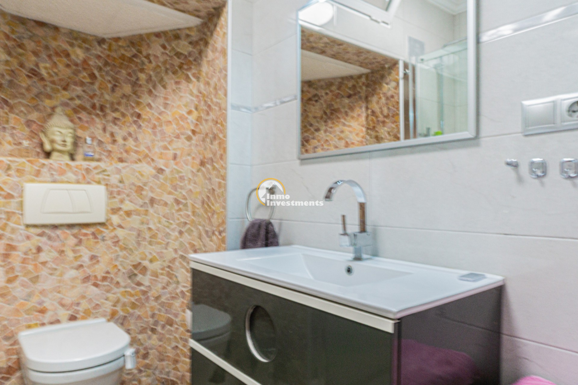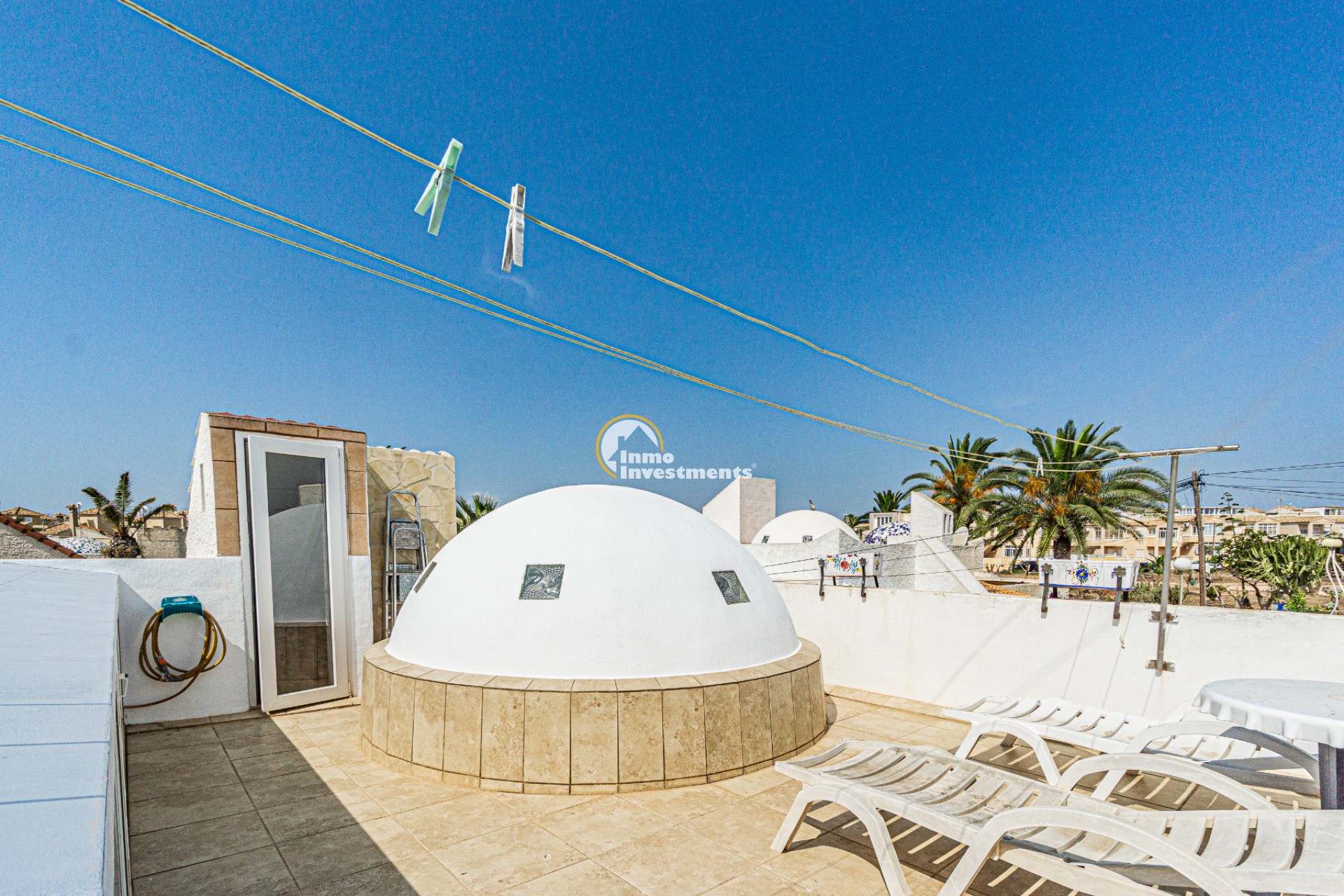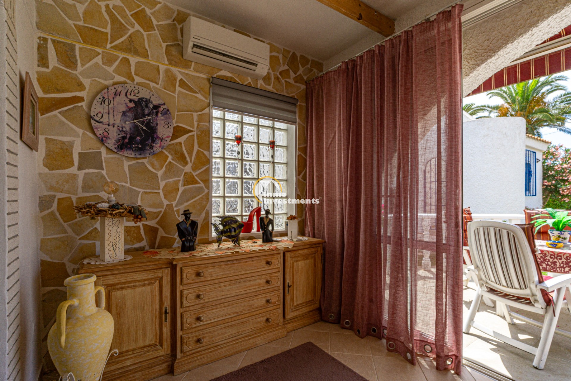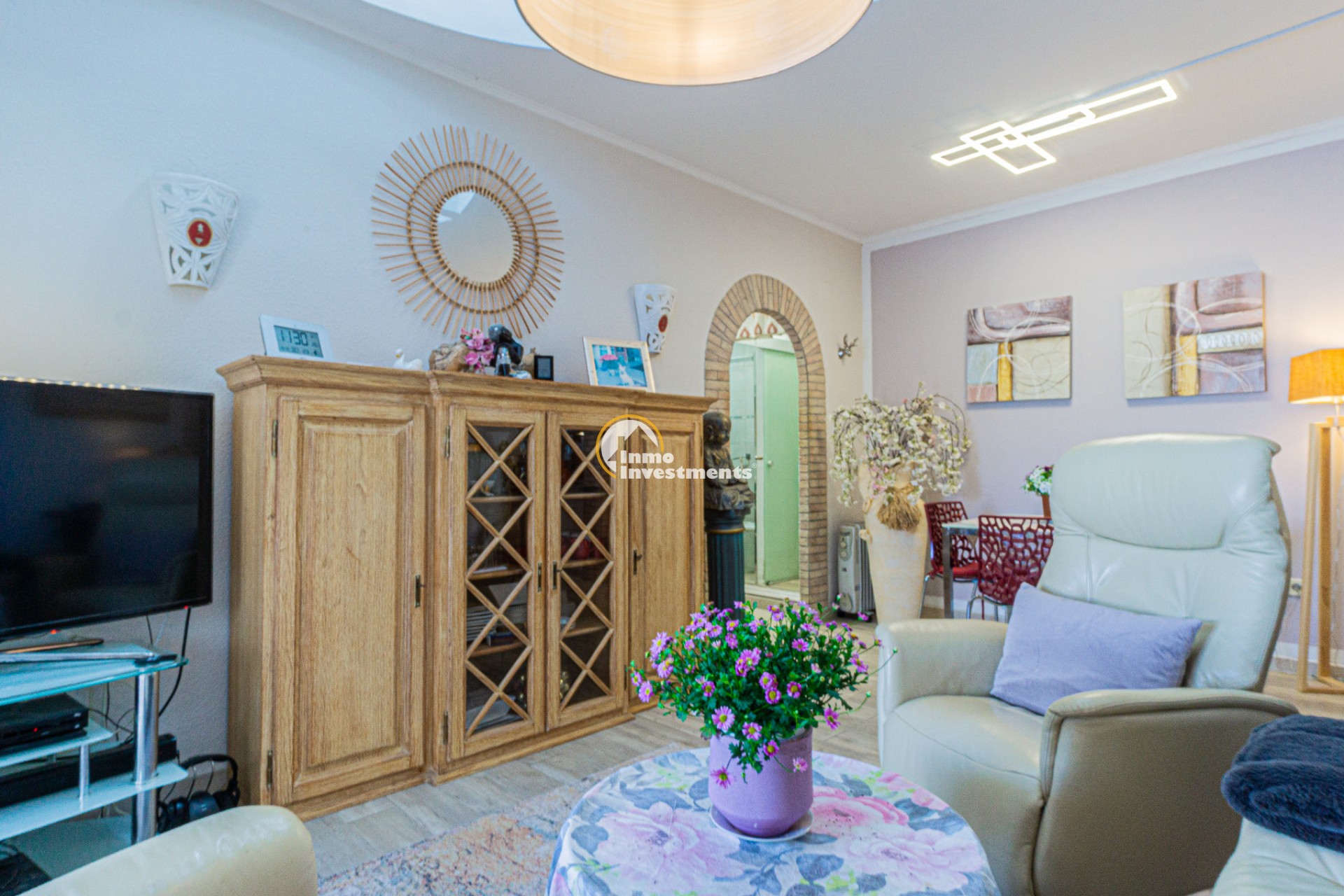 Detta charmiga radhus i quad-stil ligger i ett plan och har ett utmärkt läge nära lokala bekvämligheter och de vackra stränderna vid Orihuela Costa. Med en boyta på 66,45 m² är bostaden rullstolsanpassad och erbjuder två sovrum, ett familjebadrum, ett kök, ett rymligt vardagsrum och en separat matsal med stora fönster som vetter mot en kaklad terrass. Det privata solariumet erbjuder gott om plats för solbad och har praktiska förvaringsutrymmen. Beläget i ett lugnt område omgivet av välskötta gröna trädgårdar. Fastigheten har inte tillgång till en gemensam pool, vilket håller föreningsavgiften låg. Däremot ligger den populära offentliga poolen och restaurangen Las Chismosas bara ett par hundra meter bort – perfekt för sommardagar. Missa inte denna möjlighet – kontakta vårt team redan idag!