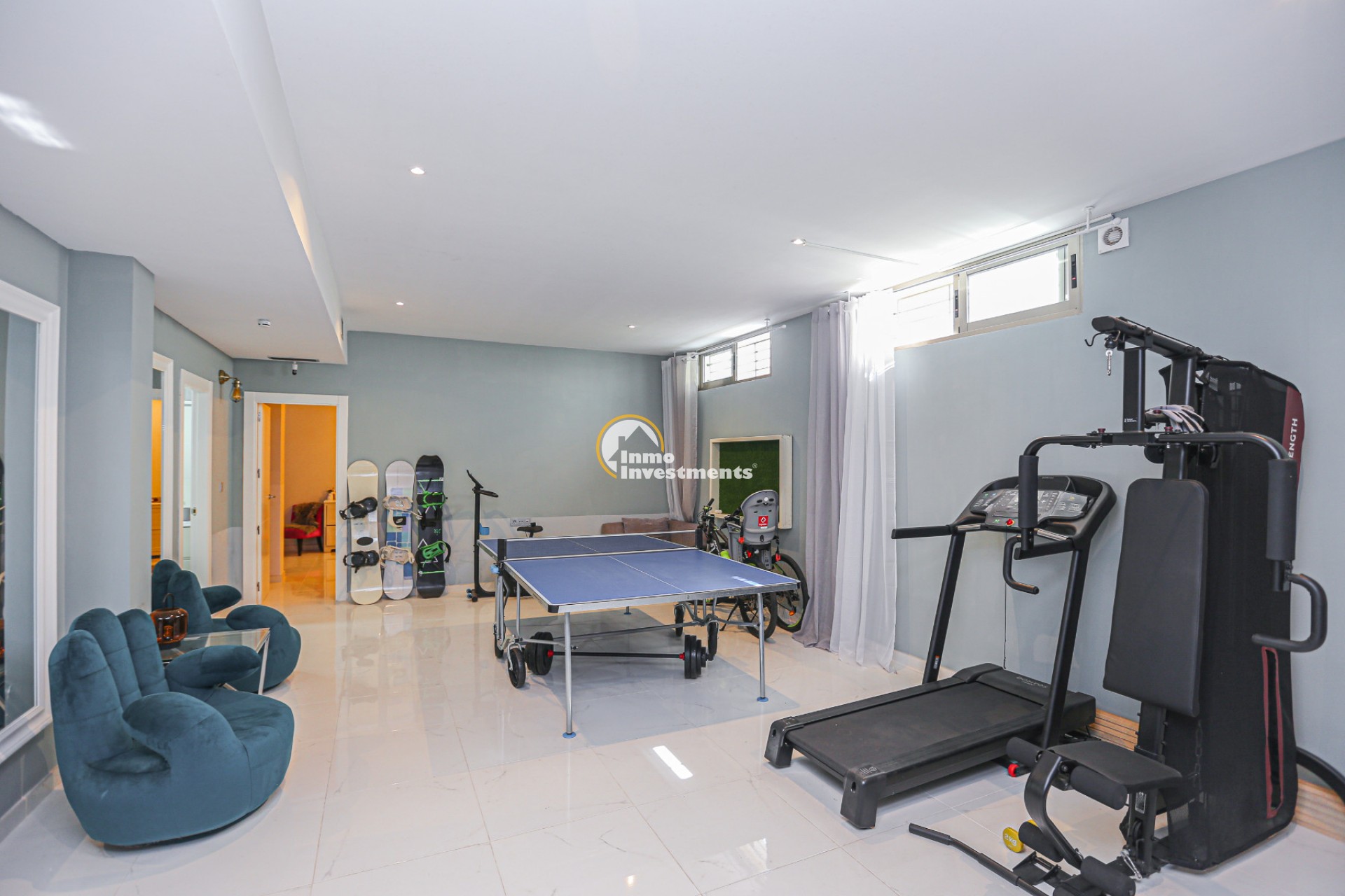 Villan har också en stor källare, som för närvarande används som barnens lekrum, och som även inkluderar två extra sovrum (ett av dem med eget badrum), en tvättstuga och ytterligare ett badrum. Totalt erbjuder bostaden 5 sovrum och 4 badrum fördelade på två plan.