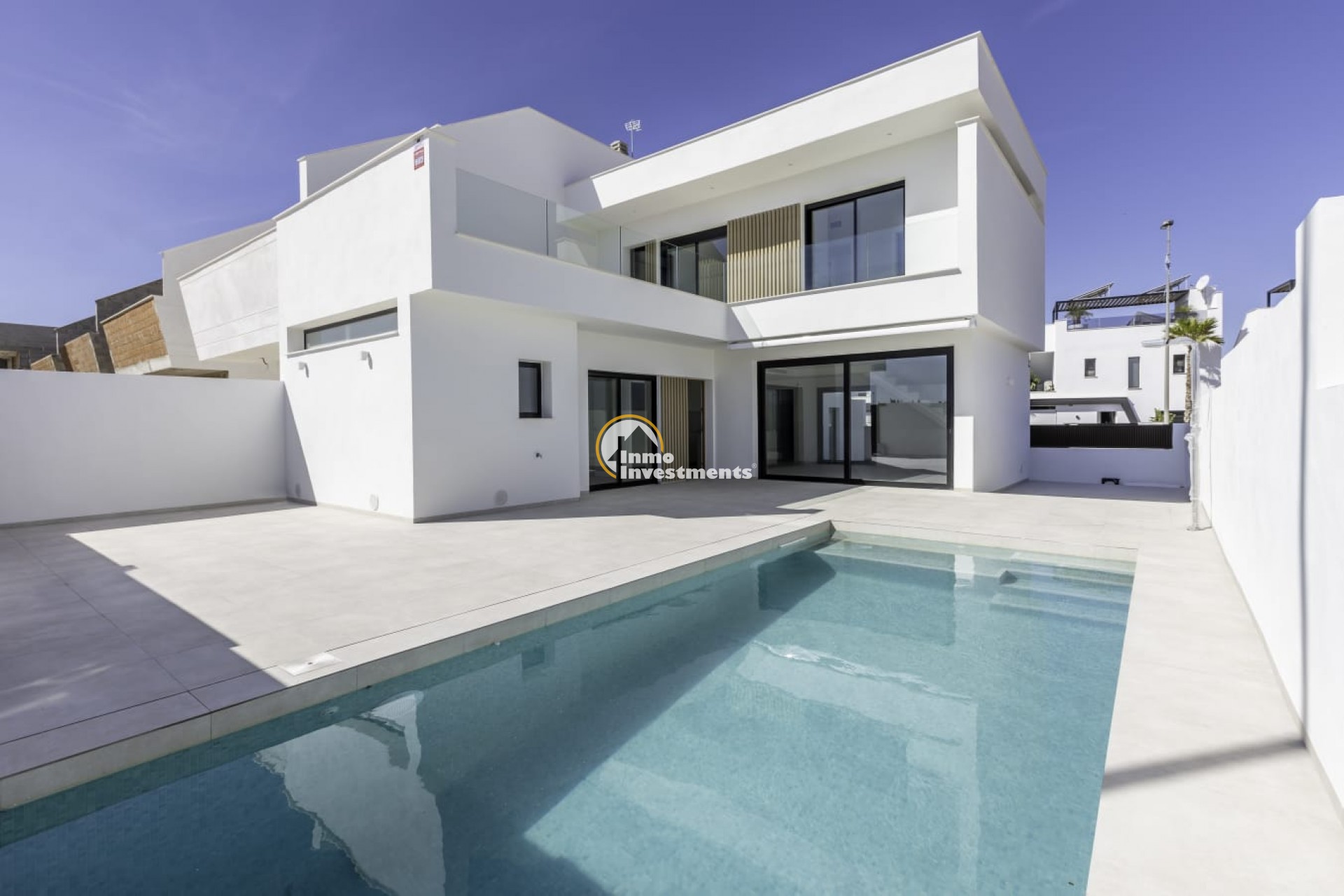 Vi introducerar ett nytt projekt med fristående villor i San Javier, utformade för att erbjuda maximal komfort och lyx på ett privilegierat läge. Dessa nybyggda villor är fördelade på två våningar, plus en stor takterrass med panoramautsikt över det omgivande området. Med en byggyta på 127 m² och en boyta på 105 m² har varje villa 3 sovrum och 3 badrum, ett ljust vardagsrum med kök i öppen planlösning och direkt tillgång till terrassen, samt en privat trädgård med pool och parkeringsplats. Dessa villor ligger nära alla viktiga tjänster och med enkel tillgång till stranden och olika sport- och kommersiella aktiviteter, och är idealiska för dem som letar efter ett bekvämt och modernt boende på Costa Blanca.
