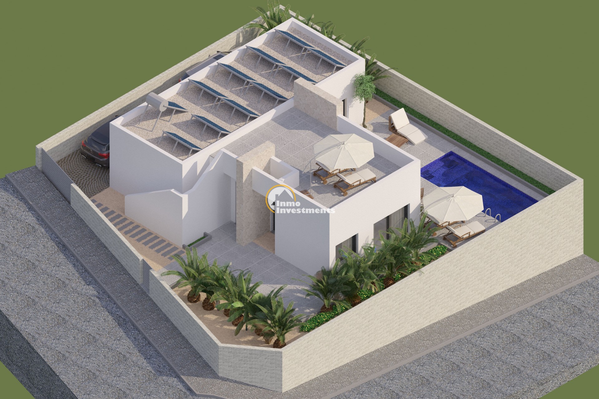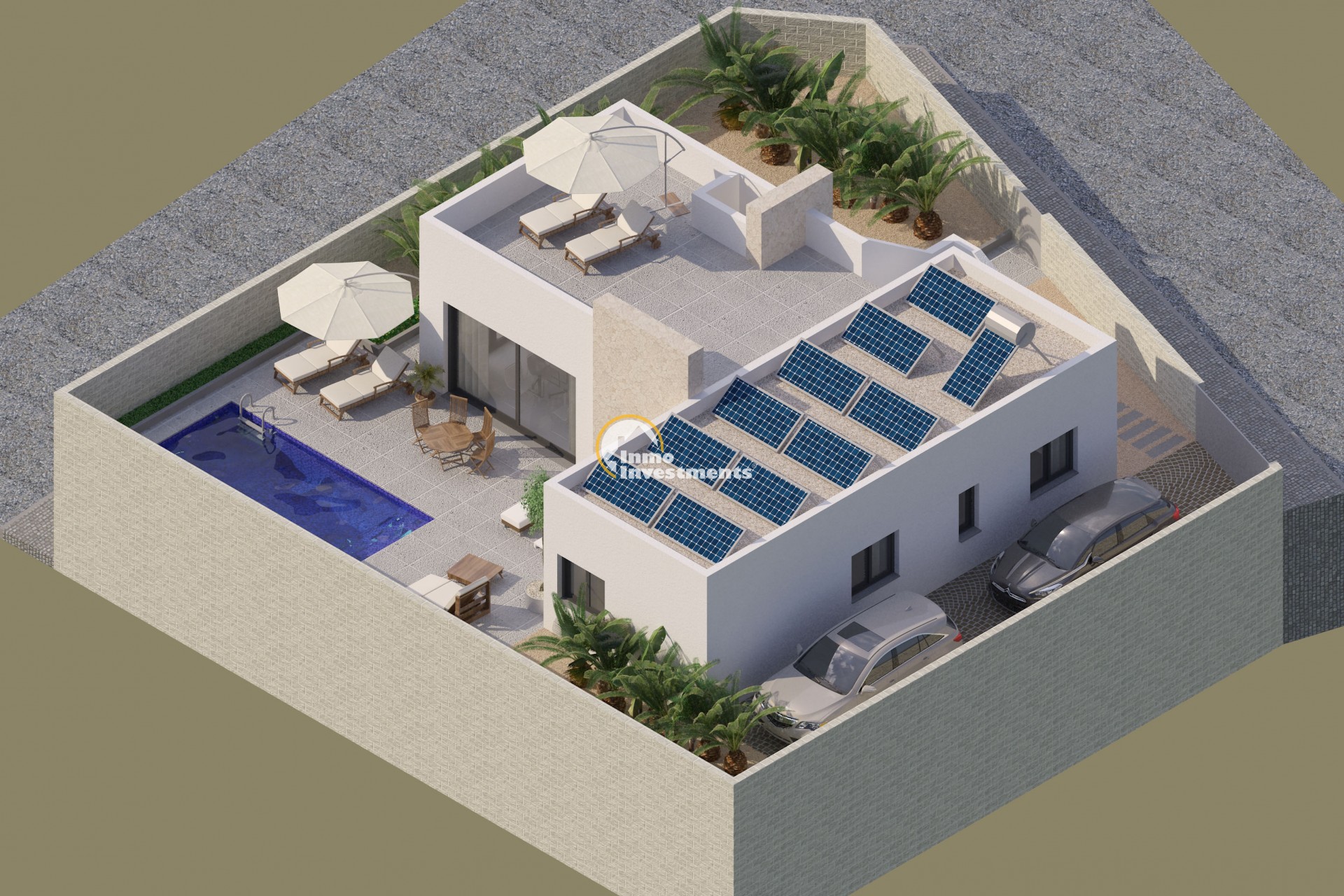 Villans exteriördesign är modern och elegant, med rena linjer och högkvalitativa ytbehandlingar som smälter perfekt in i Benijófars naturliga omgivningar. Den privata tomten på 379 m² har en rymlig terrass på 102 m², perfekt för att koppla av och njuta av Medelhavsklimatet. Parkeringsområdet ger ytterligare bekvämlighet för boende och besökare. Den privata poolen är perfekt för att svalka sig under varma sommardagar och ger en touch av lyx till utomhusutrymmet. Möjligheten att lägga till ett solarium erbjuder ytterligare utrymme för att sola och njuta av panoramautsikten.