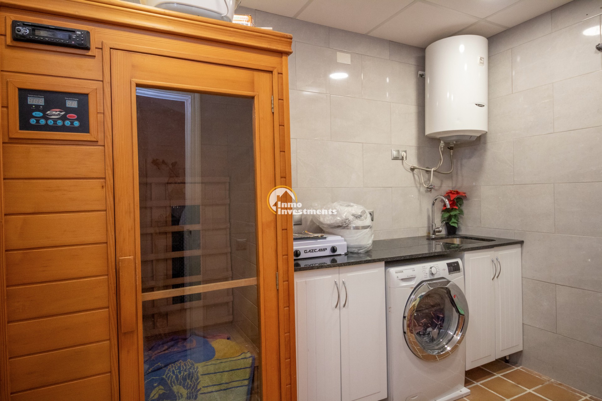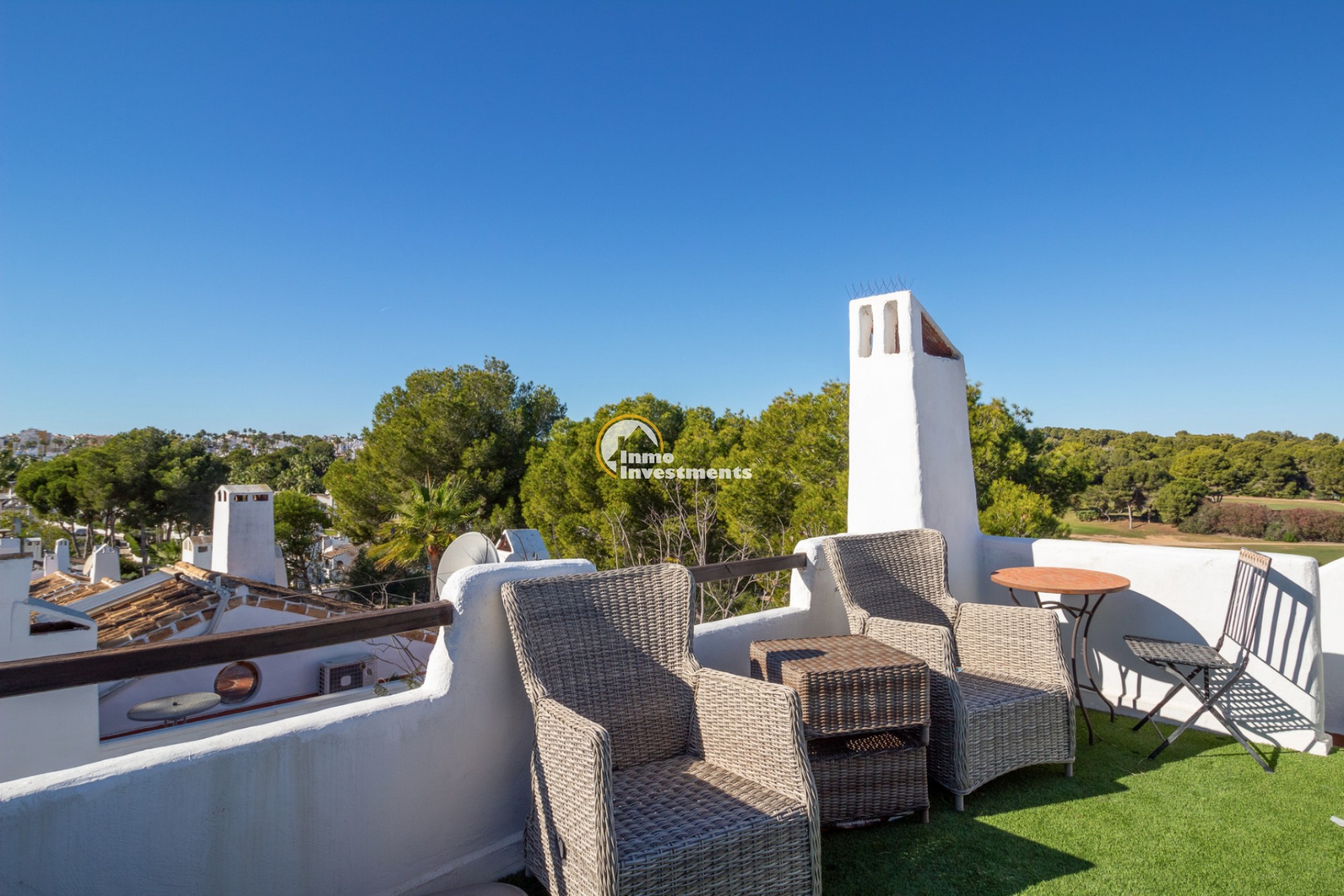 Dessa hem har en ovanlig planlösning där sovrummen ligger på bottenvåningen tillsammans med två dubbla sovrum, två badrum, en tvättstuga med bastu och tillgång till ett inglasat uterum. Det huvudsakliga vardagsplanet ligger på övre våningen och erbjuder utmärkta vyer över omgivningarna. Här finns ett ljust vardagsrum med matplats, ett kök i amerikansk stil med frukostbar samt en separat gästtoalett. Från denna våning når du även balkongen och det privata solariumet, båda med fantastisk utsikt över Villamartin golfbana.