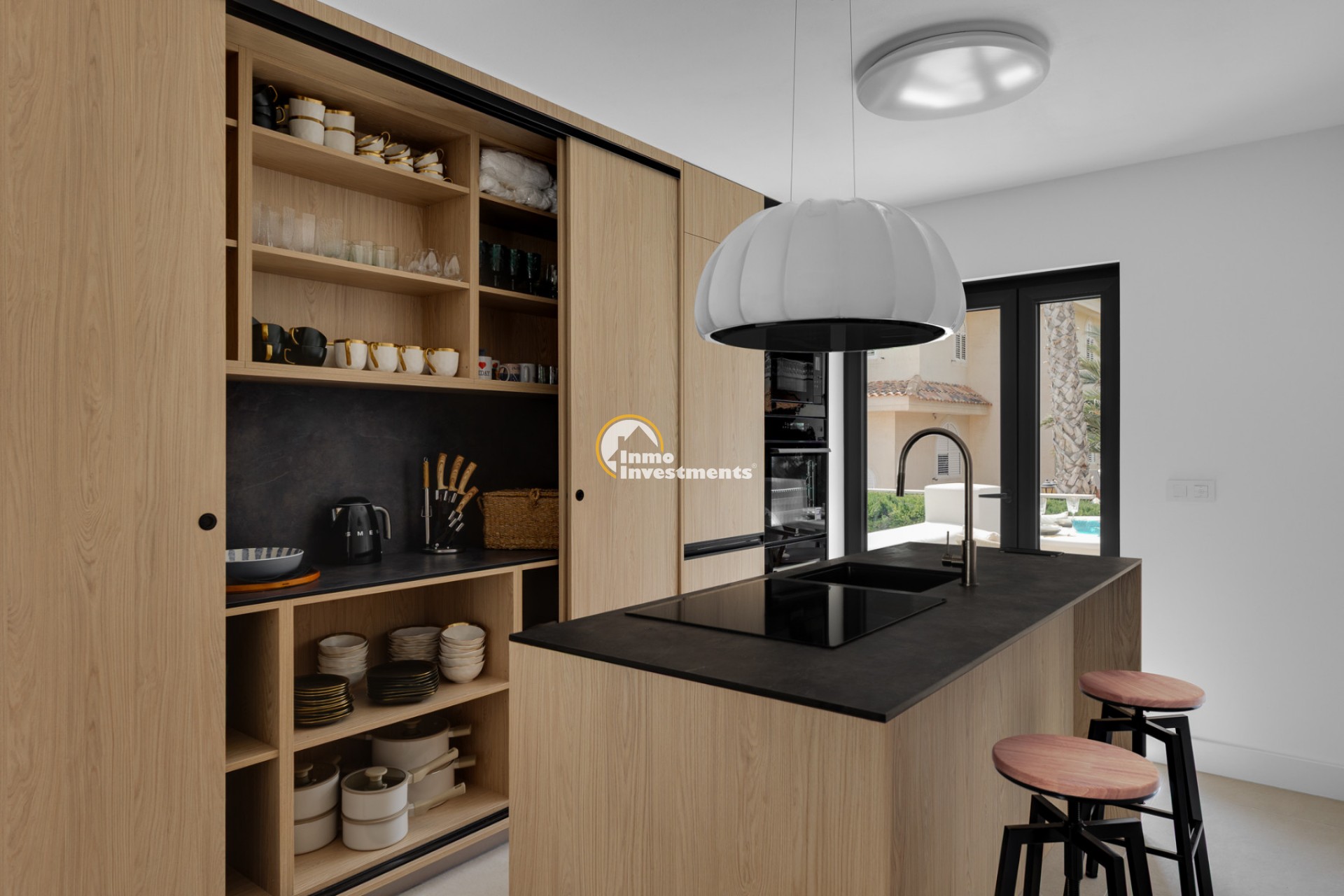 Utomhus finns flera terrasser med havsutsikt, ett stort privat poolområde med pergola, utekök och sittplatser samt ett rymligt solarium. Poolen är utrustad med jacuzzi, vattenfall och uppvärmning. Fastigheten har även garage, två parkeringsplatser, larm, videoövervakning, elektriska jalusier och automatisk grind. Villan säljs fullt möblerad och utrustad. Kontakta oss för mer information!
