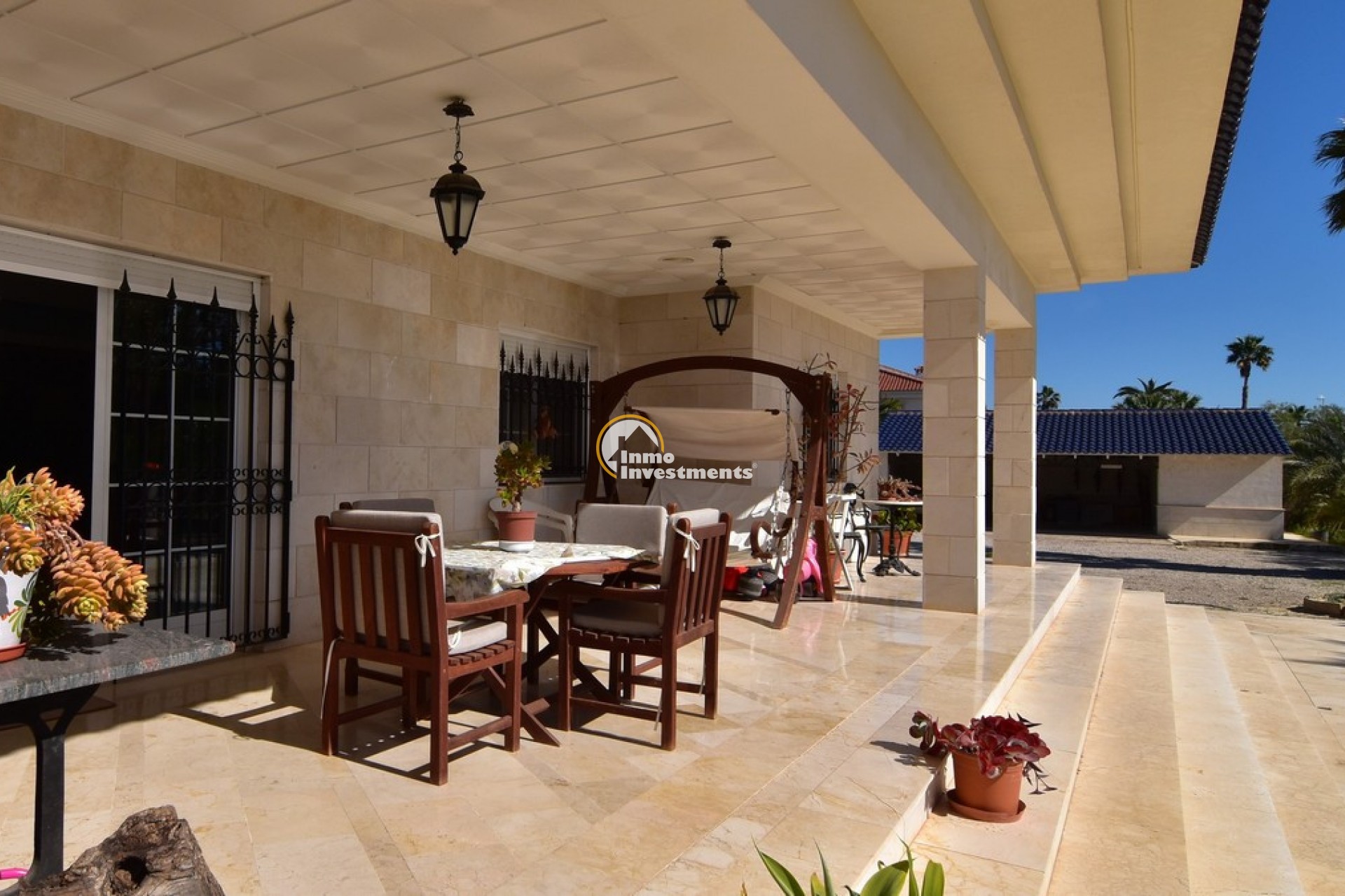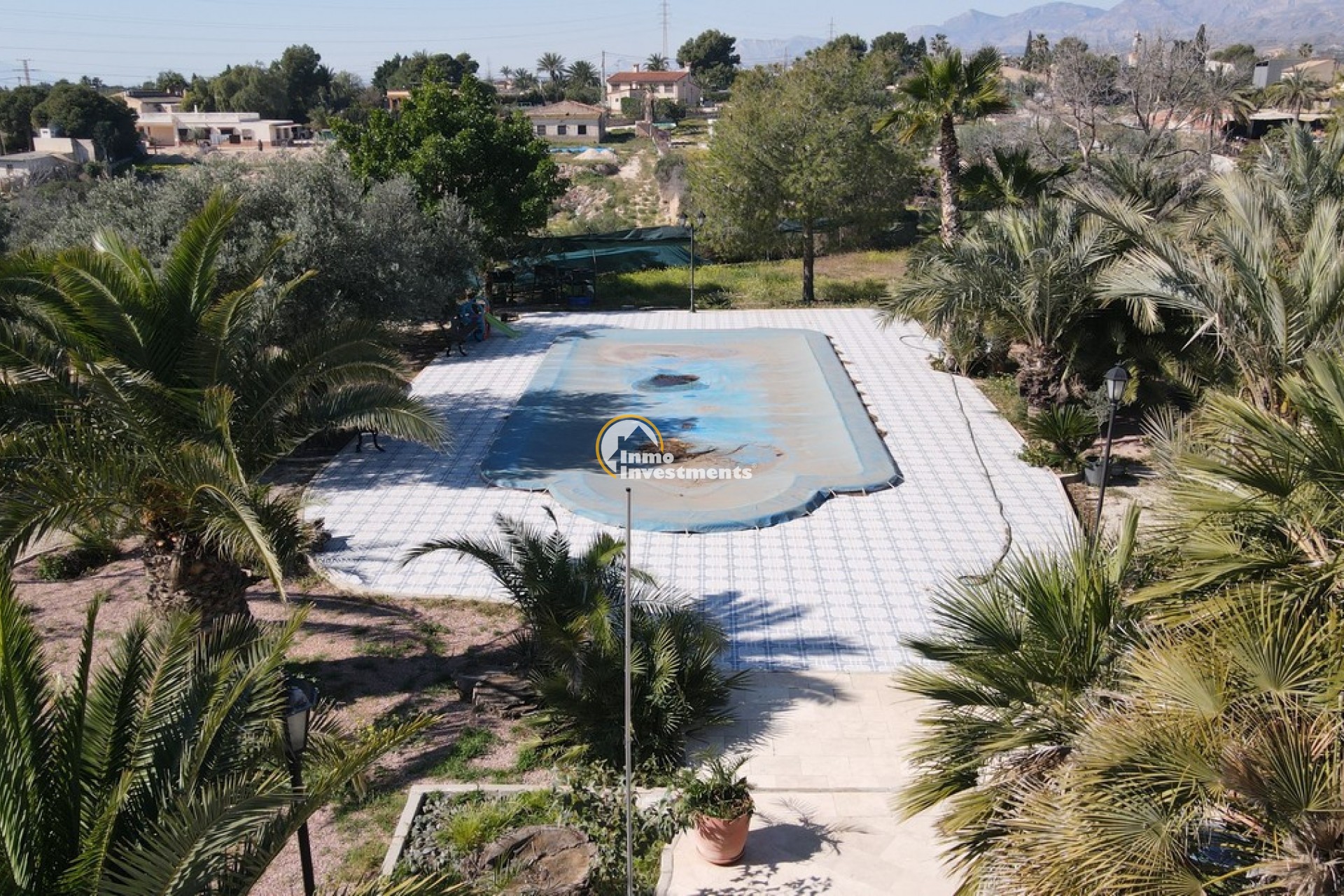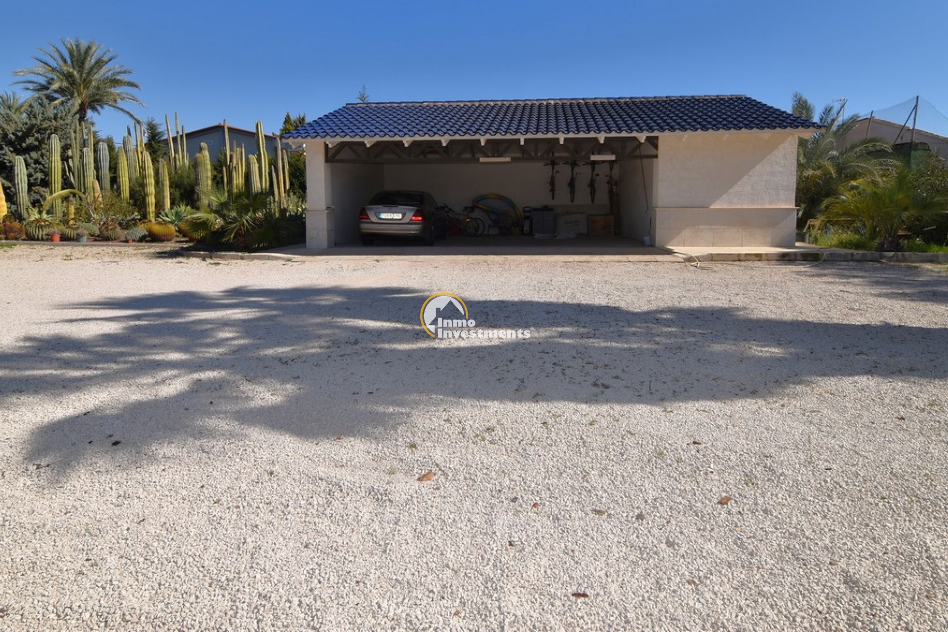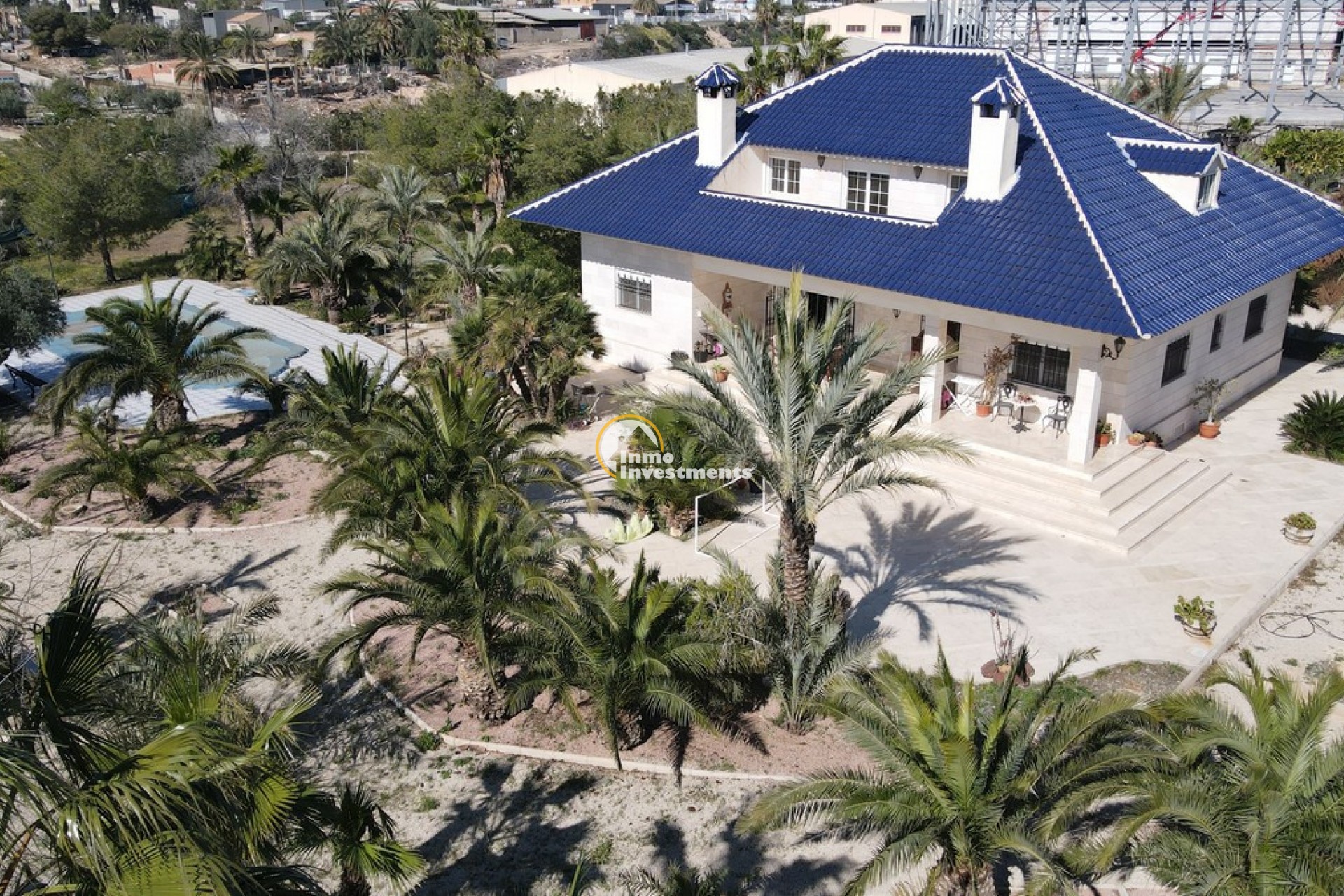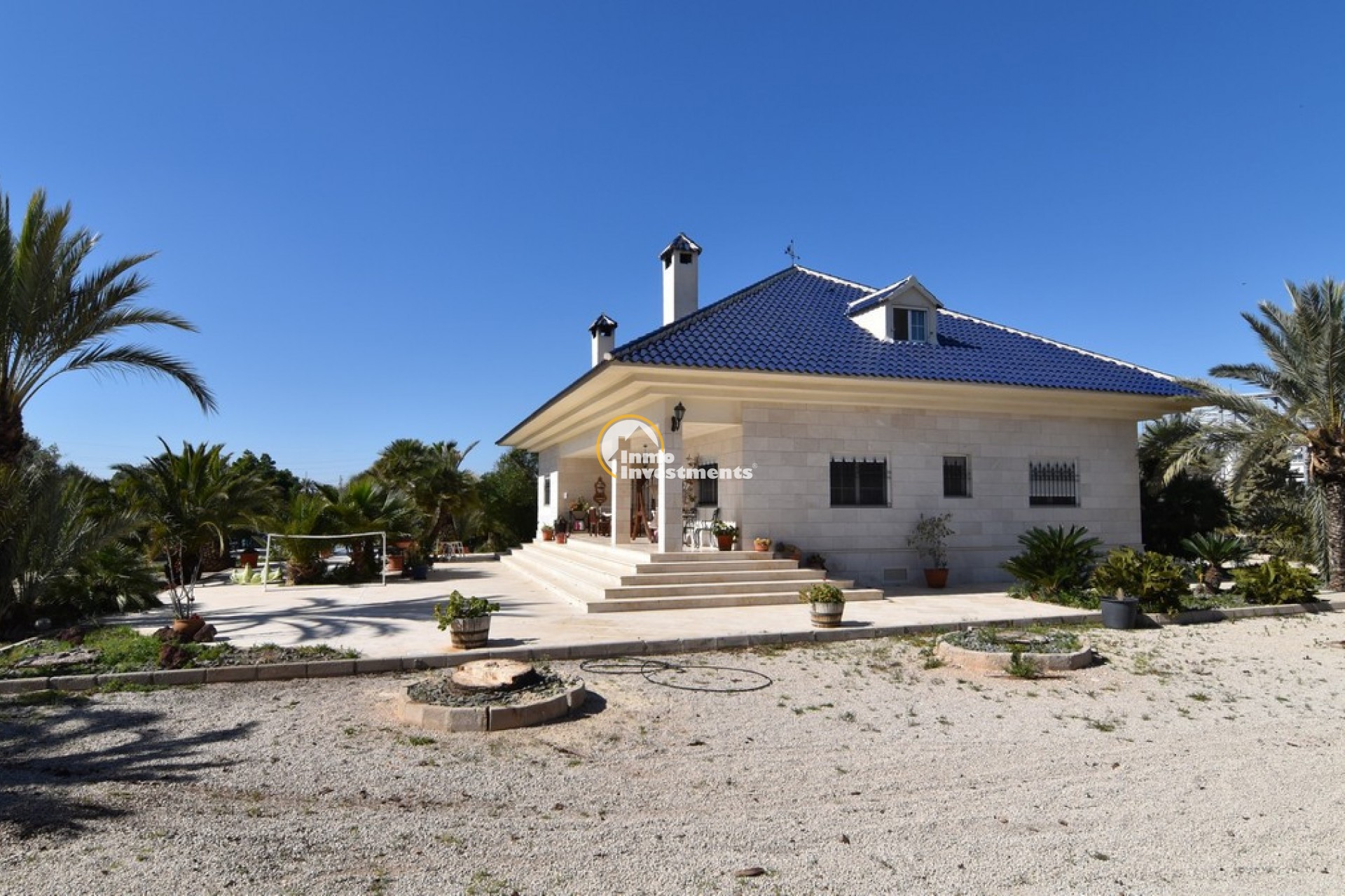 Södervänd villa belägen i den prestigefyllda urbanisationen Partida Llano San José i Elche. På bottenvåningen finns en stor entréhall som leder till köket och den formella matsalen, båda med utgång till en rymlig täckt terrass. Här finns även ett vardagsrum och ett stort kök med frukostplats. På motsatt sida av bostaden finns tre sovrum och två badrum. Övervåningen är avsedd för mastersviten, som inkluderar ett stort sovrum med utgång till en privat balkong, ett mycket rymligt badrum samt en stor walk-in-garderob och dressing room. Källarplanet på cirka 100 m² erbjuder ytterligare tre sovrum, ett badrum, ett stort spel- eller sällskapsrum samt en bodega.Utomhus erbjuder fastigheten ett separat garage med plats för minst tre bilar, en stor 10 x 5 pool med uteplats samt uppvuxna trädgårdar med en variation av etablerade växter och kaktusar.Fastigheten ligger längst in på en liten återvändsgata, vilket ger ett mycket lugnt och privat läge. Villan står på en tomt om cirka 5,000 m². I detta område är minsta tomtstorlekarna omkring 2,000 m², alla klassificerade som urban mark snarare än rustik, vilket ger gott om utrymme och avstånd mellan grannfastigheterna. Urbanisationen består huvudsakligen av permanentboende spanjorer, med några nord- europeiska familjer som också bor i området.