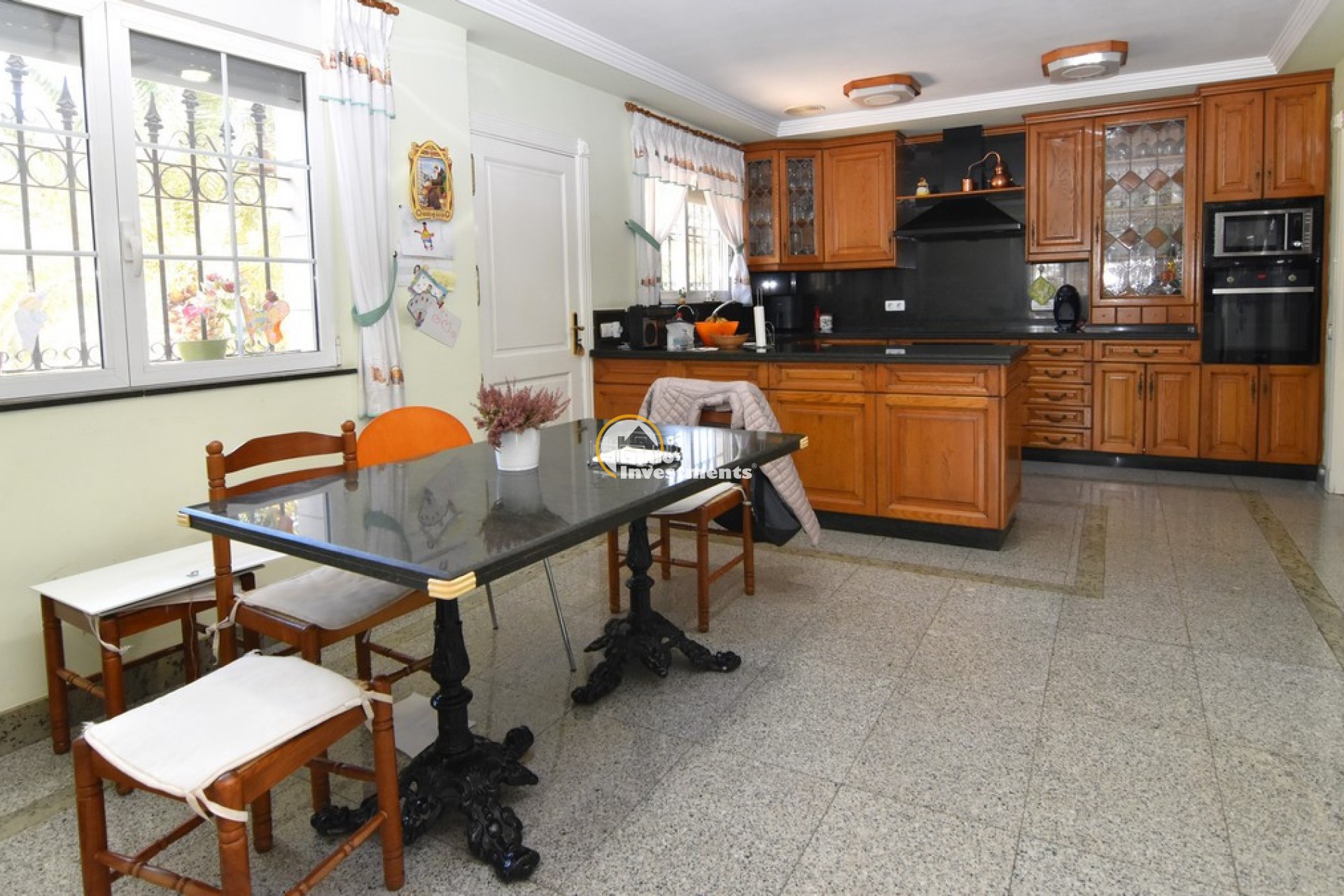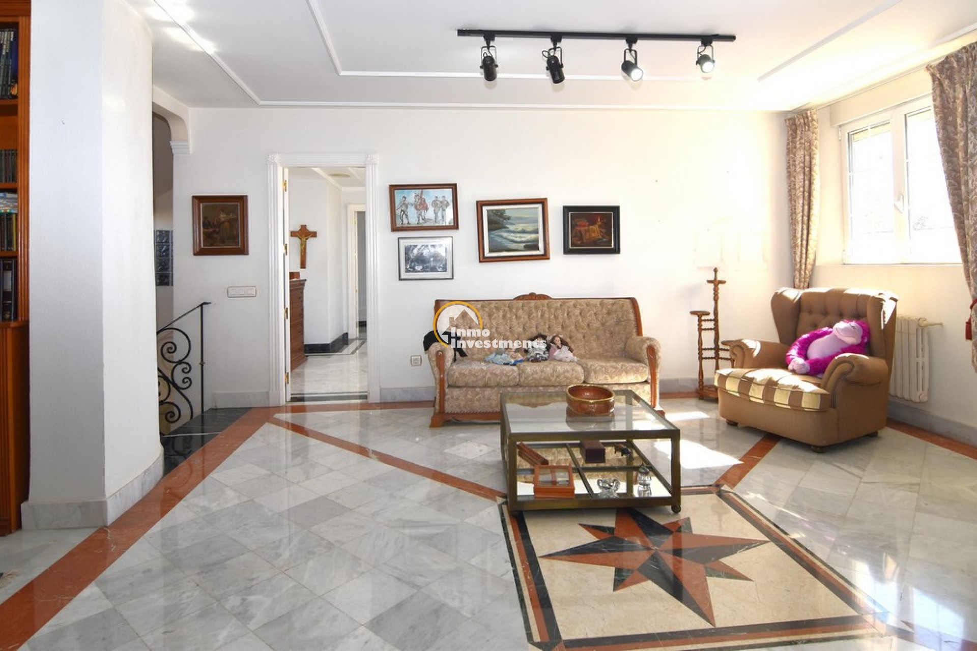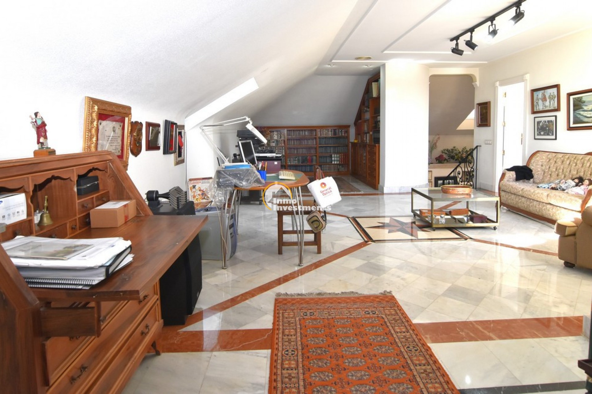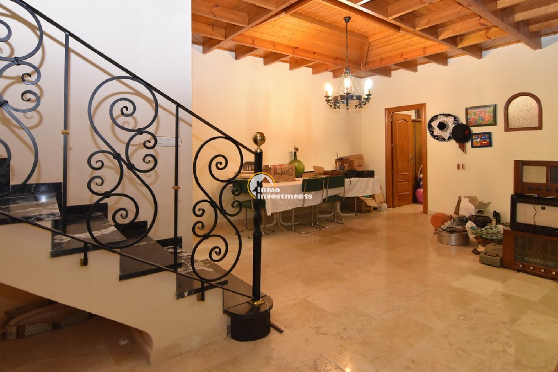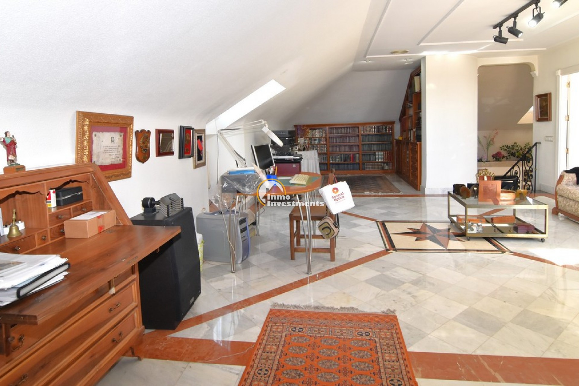 Södervänd villa belägen i den prestigefyllda urbanisationen Partida Llano San José i Elche. På bottenvåningen finns en stor entréhall som leder till köket och den formella matsalen, båda med utgång till en rymlig täckt terrass. Här finns även ett vardagsrum och ett stort kök med frukostplats. På motsatt sida av bostaden finns tre sovrum och två badrum. Övervåningen är avsedd för mastersviten, som inkluderar ett stort sovrum med utgång till en privat balkong, ett mycket rymligt badrum samt en stor walk-in-garderob och dressing room. Källarplanet på cirka 100 m² erbjuder ytterligare tre sovrum, ett badrum, ett stort spel- eller sällskapsrum samt en bodega.Utomhus erbjuder fastigheten ett separat garage med plats för minst tre bilar, en stor 10 x 5 pool med uteplats samt uppvuxna trädgårdar med en variation av etablerade växter och kaktusar.Fastigheten ligger längst in på en liten återvändsgata, vilket ger ett mycket lugnt och privat läge. Villan står på en tomt om cirka 5,000 m². I detta område är minsta tomtstorlekarna omkring 2,000 m², alla klassificerade som urban mark snarare än rustik, vilket ger gott om utrymme och avstånd mellan grannfastigheterna. Urbanisationen består huvudsakligen av permanentboende spanjorer, med några nord- europeiska familjer som också bor i området.