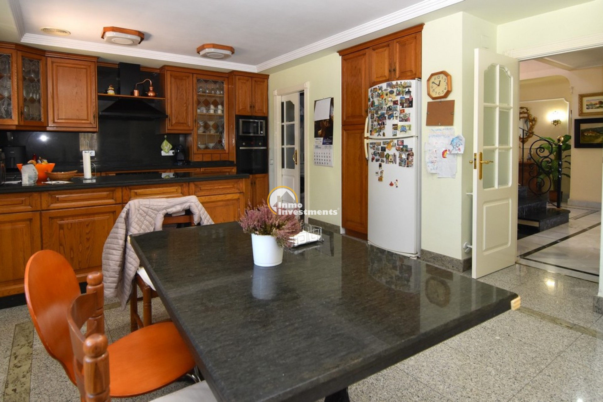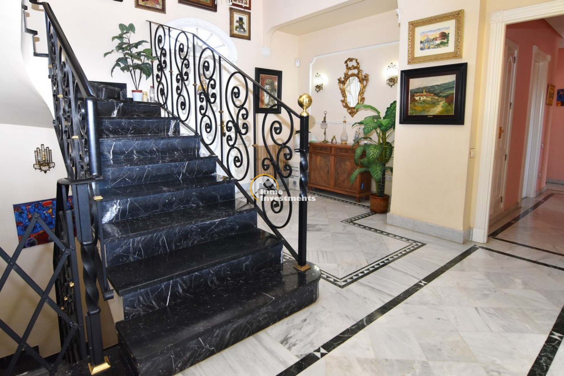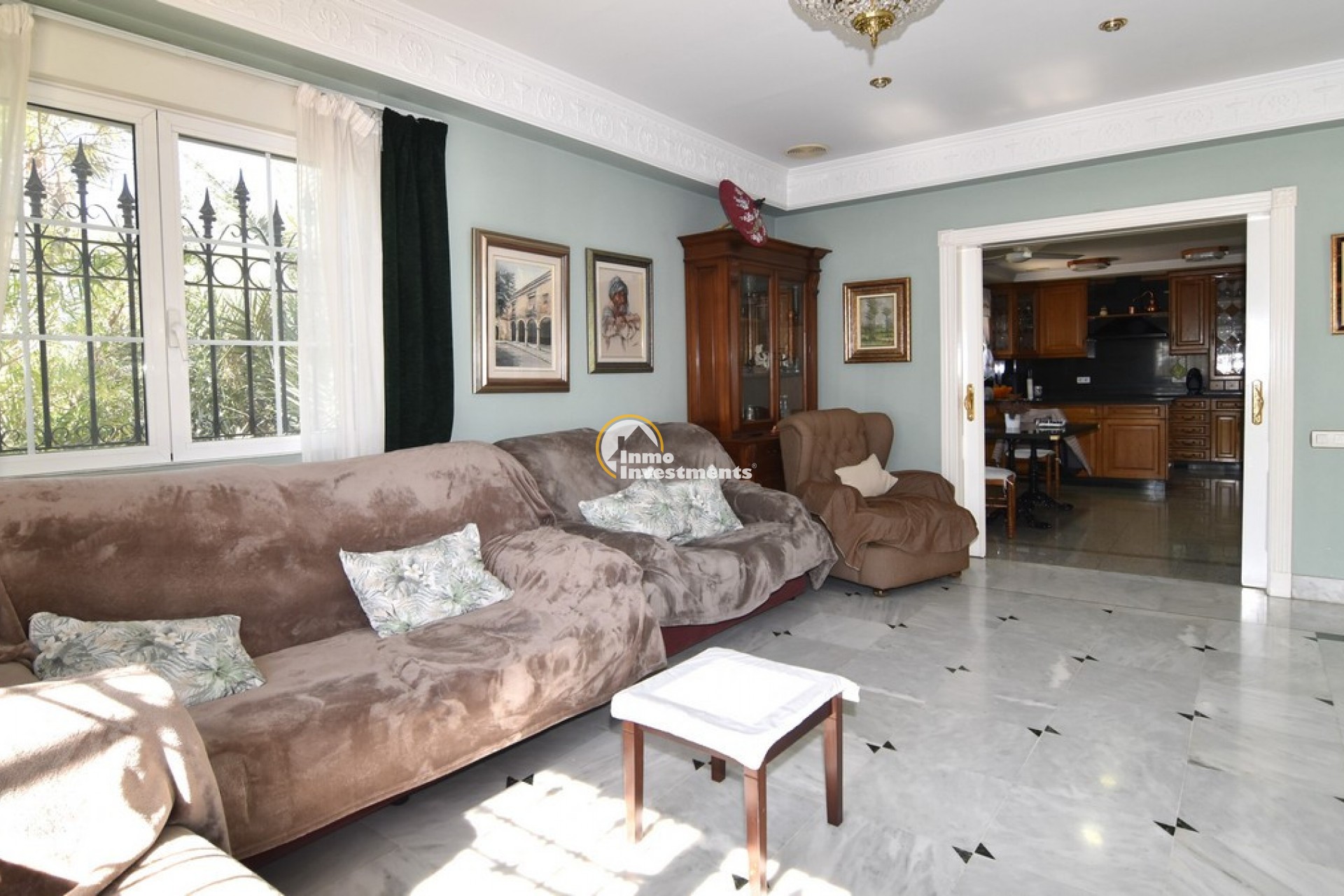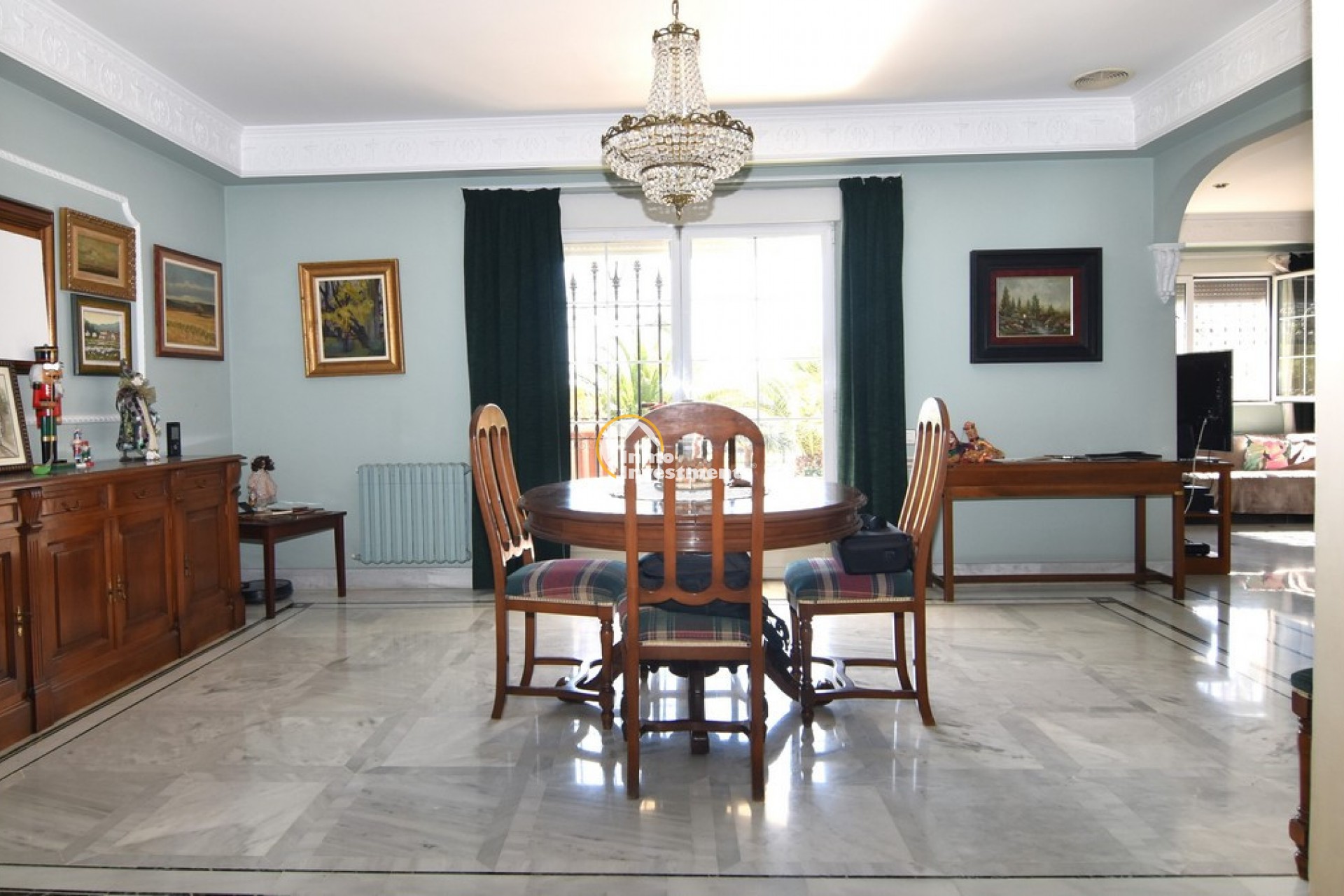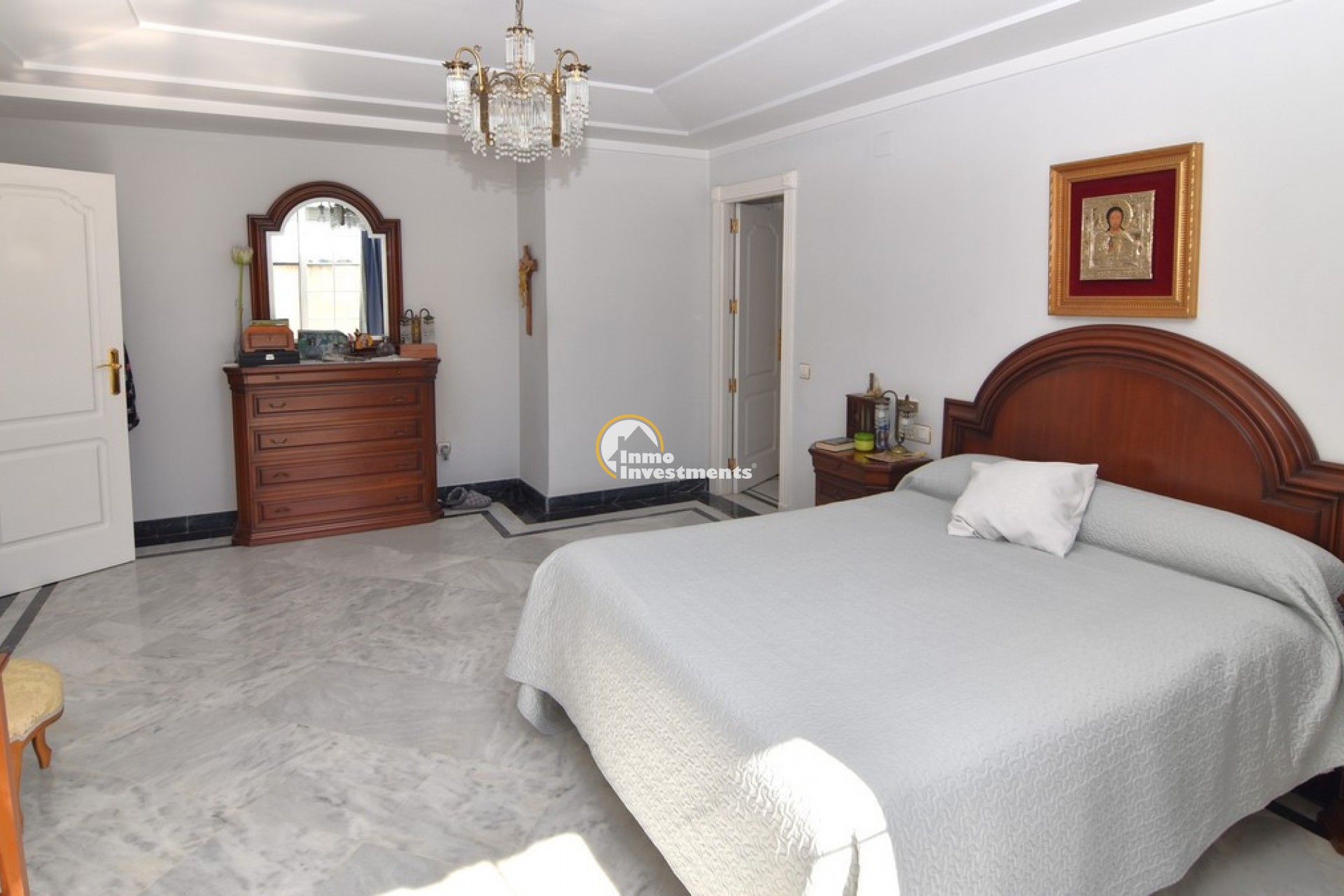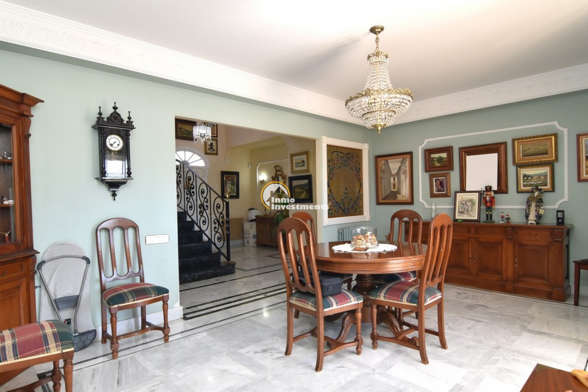 Södervänd villa belägen i den prestigefyllda urbanisationen Partida Llano San José i Elche. På bottenvåningen finns en stor entréhall som leder till köket och den formella matsalen, båda med utgång till en rymlig täckt terrass. Här finns även ett vardagsrum och ett stort kök med frukostplats. På motsatt sida av bostaden finns tre sovrum och två badrum. Övervåningen är avsedd för mastersviten, som inkluderar ett stort sovrum med utgång till en privat balkong, ett mycket rymligt badrum samt en stor walk-in-garderob och dressing room. Källarplanet på cirka 100 m² erbjuder ytterligare tre sovrum, ett badrum, ett stort spel- eller sällskapsrum samt en bodega.Utomhus erbjuder fastigheten ett separat garage med plats för minst tre bilar, en stor 10 x 5 pool med uteplats samt uppvuxna trädgårdar med en variation av etablerade växter och kaktusar.Fastigheten ligger längst in på en liten återvändsgata, vilket ger ett mycket lugnt och privat läge. Villan står på en tomt om cirka 5,000 m². I detta område är minsta tomtstorlekarna omkring 2,000 m², alla klassificerade som urban mark snarare än rustik, vilket ger gott om utrymme och avstånd mellan grannfastigheterna. Urbanisationen består huvudsakligen av permanentboende spanjorer, med några nord- europeiska familjer som också bor i området.