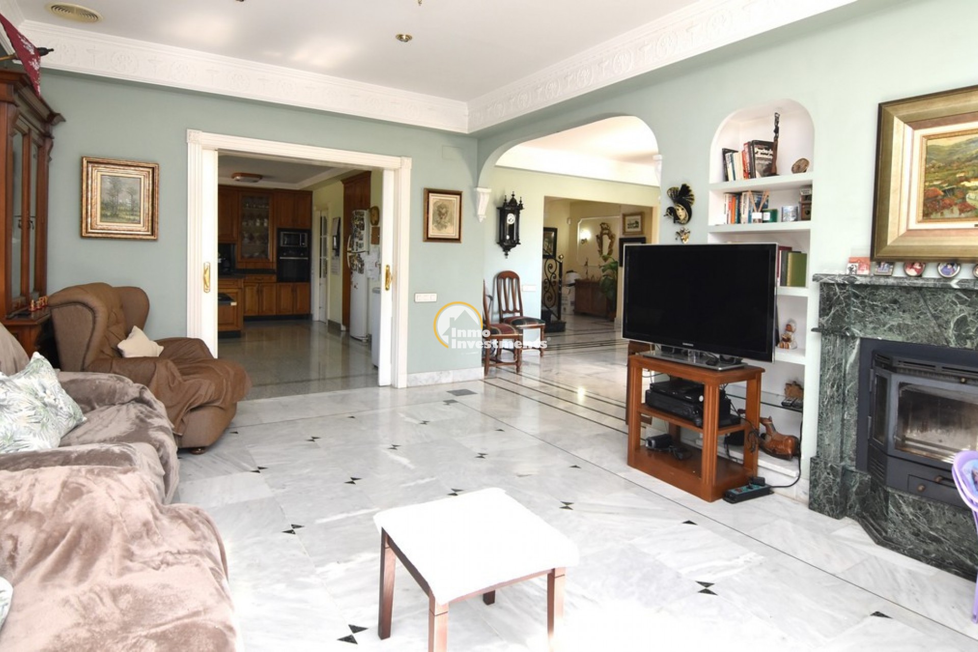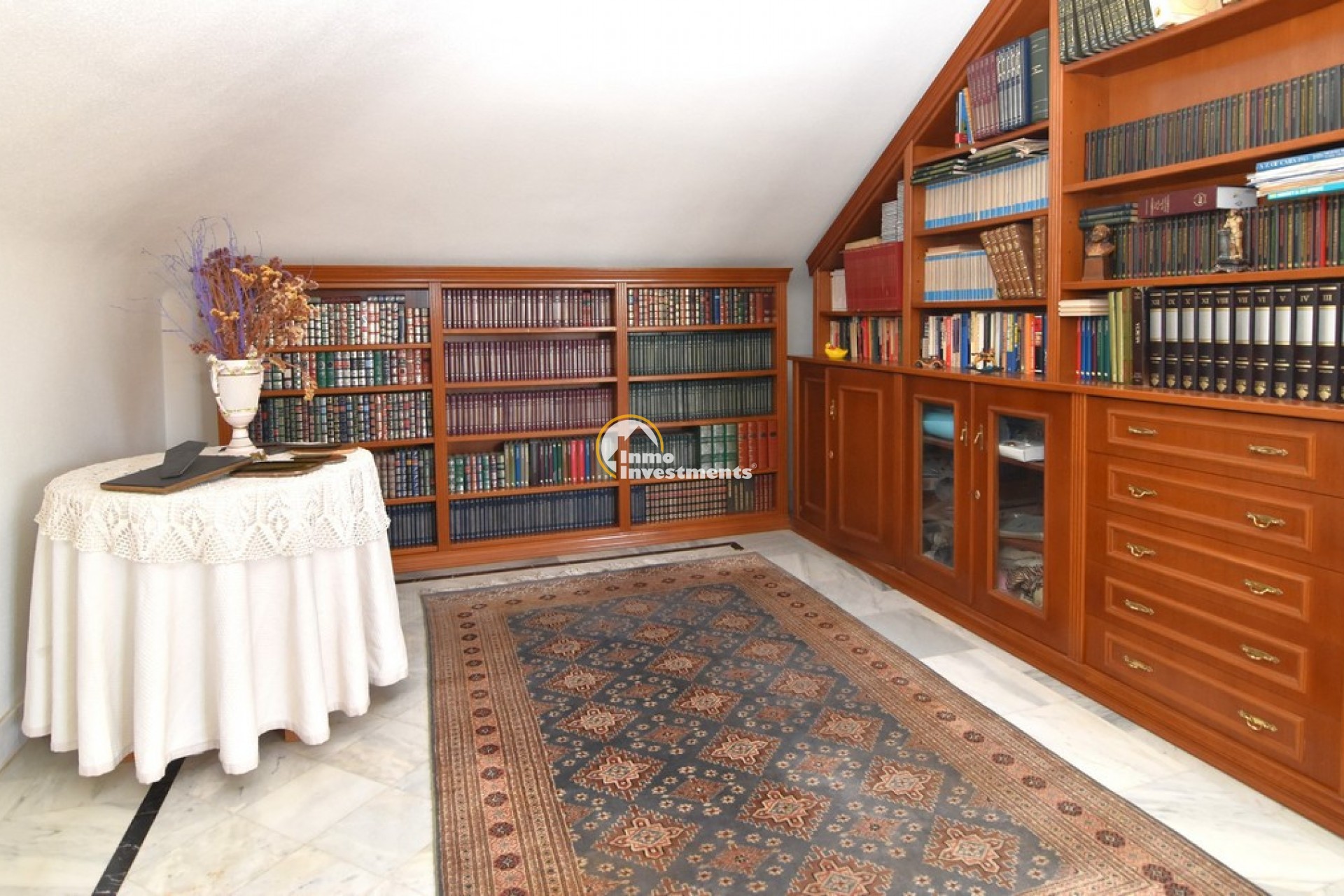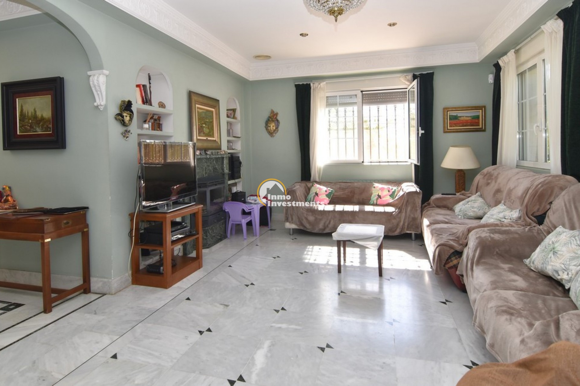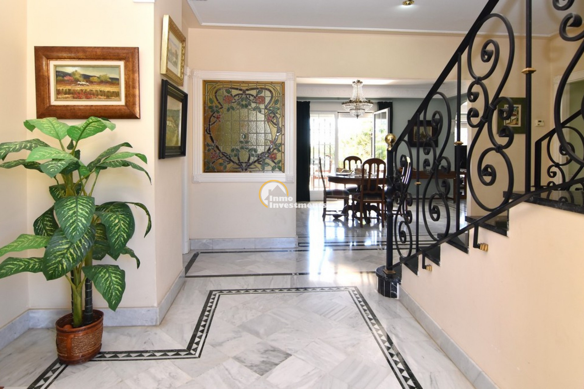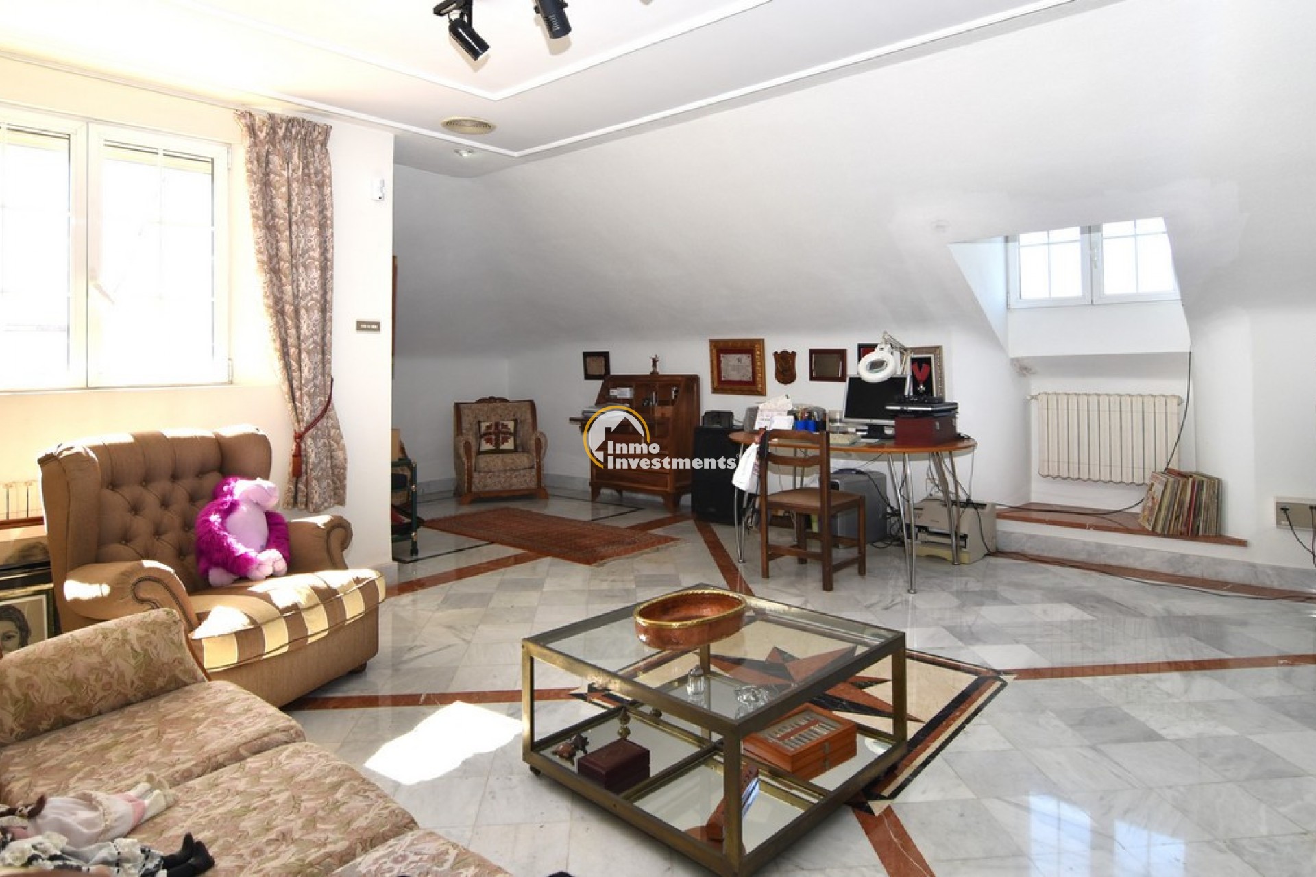 Södervänd villa belägen i den prestigefyllda urbanisationen Partida Llano San José i Elche. På bottenvåningen finns en stor entréhall som leder till köket och den formella matsalen, båda med utgång till en rymlig täckt terrass. Här finns även ett vardagsrum och ett stort kök med frukostplats. På motsatt sida av bostaden finns tre sovrum och två badrum. Övervåningen är avsedd för mastersviten, som inkluderar ett stort sovrum med utgång till en privat balkong, ett mycket rymligt badrum samt en stor walk-in-garderob och dressing room. Källarplanet på cirka 100 m² erbjuder ytterligare tre sovrum, ett badrum, ett stort spel- eller sällskapsrum samt en bodega.Utomhus erbjuder fastigheten ett separat garage med plats för minst tre bilar, en stor 10 x 5 pool med uteplats samt uppvuxna trädgårdar med en variation av etablerade växter och kaktusar.Fastigheten ligger längst in på en liten återvändsgata, vilket ger ett mycket lugnt och privat läge. Villan står på en tomt om cirka 5,000 m². I detta område är minsta tomtstorlekarna omkring 2,000 m², alla klassificerade som urban mark snarare än rustik, vilket ger gott om utrymme och avstånd mellan grannfastigheterna. Urbanisationen består huvudsakligen av permanentboende spanjorer, med några nord- europeiska familjer som också bor i området.