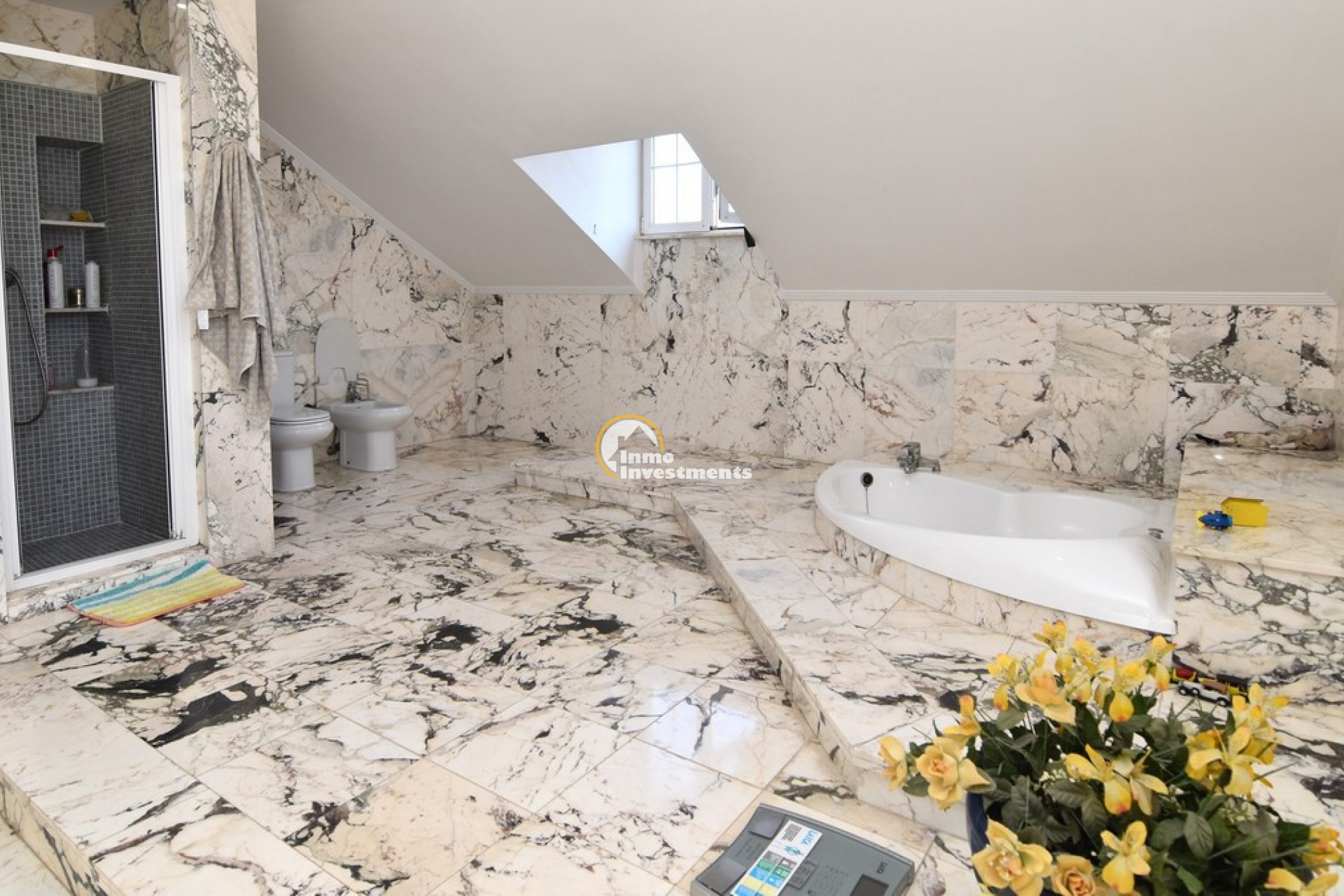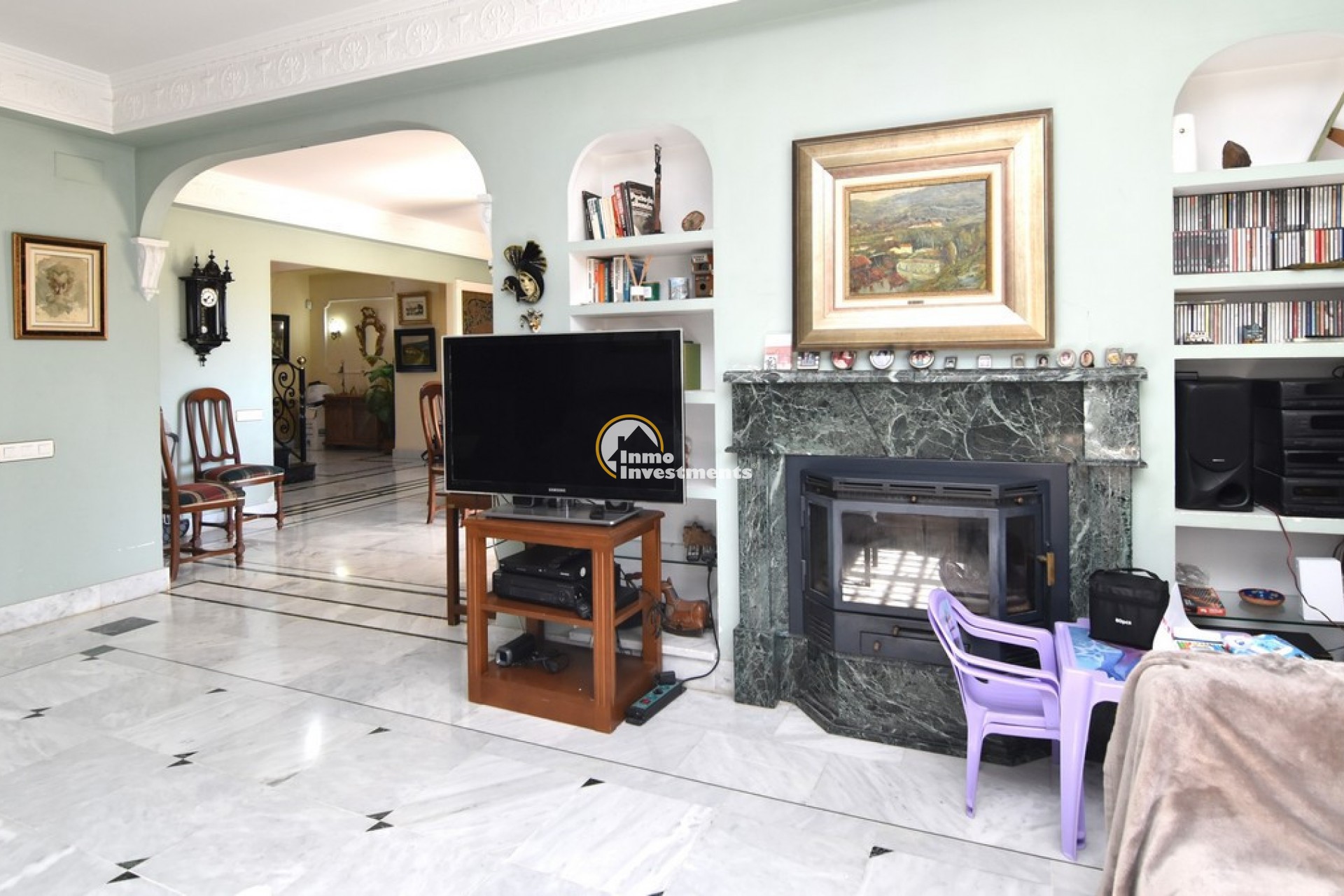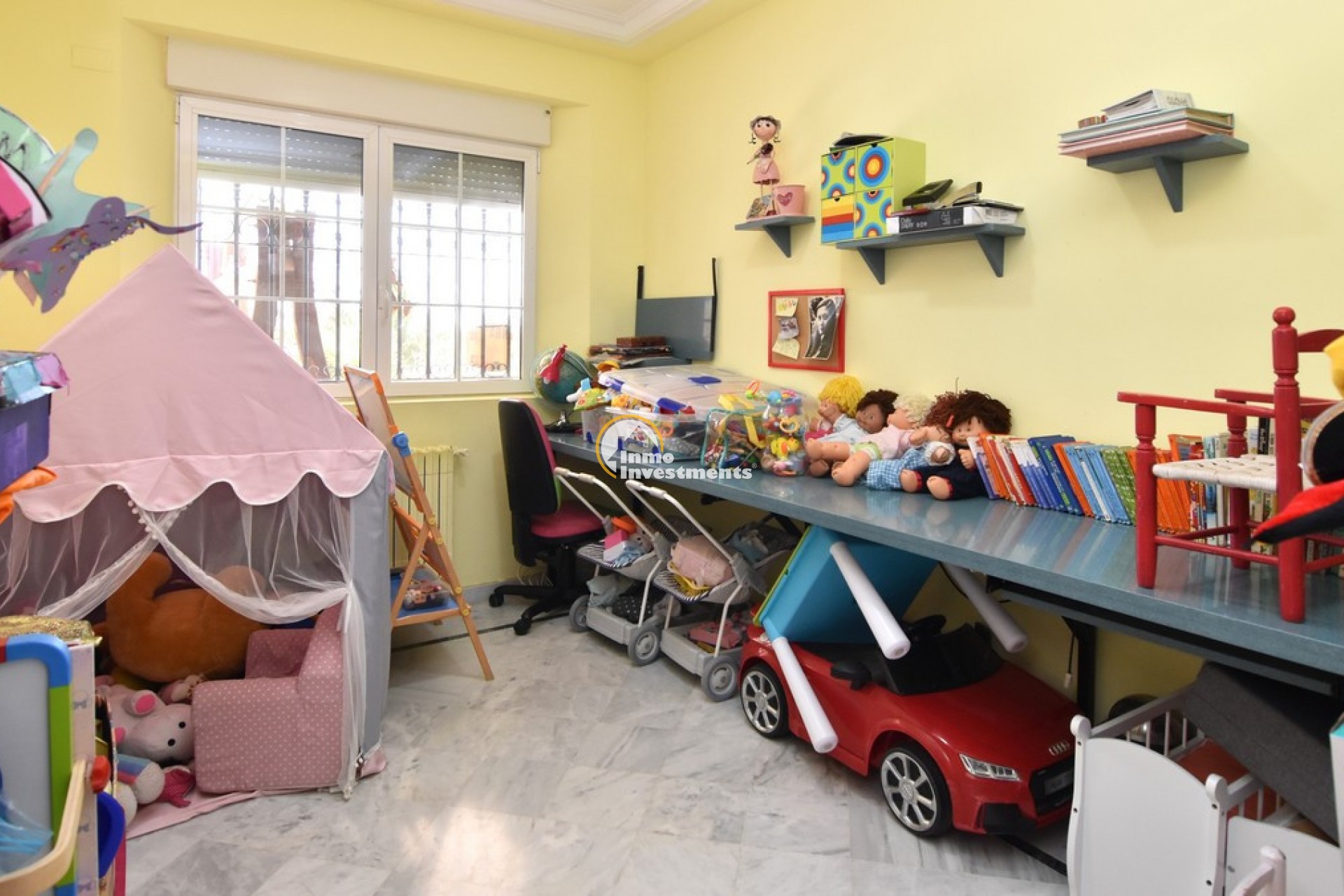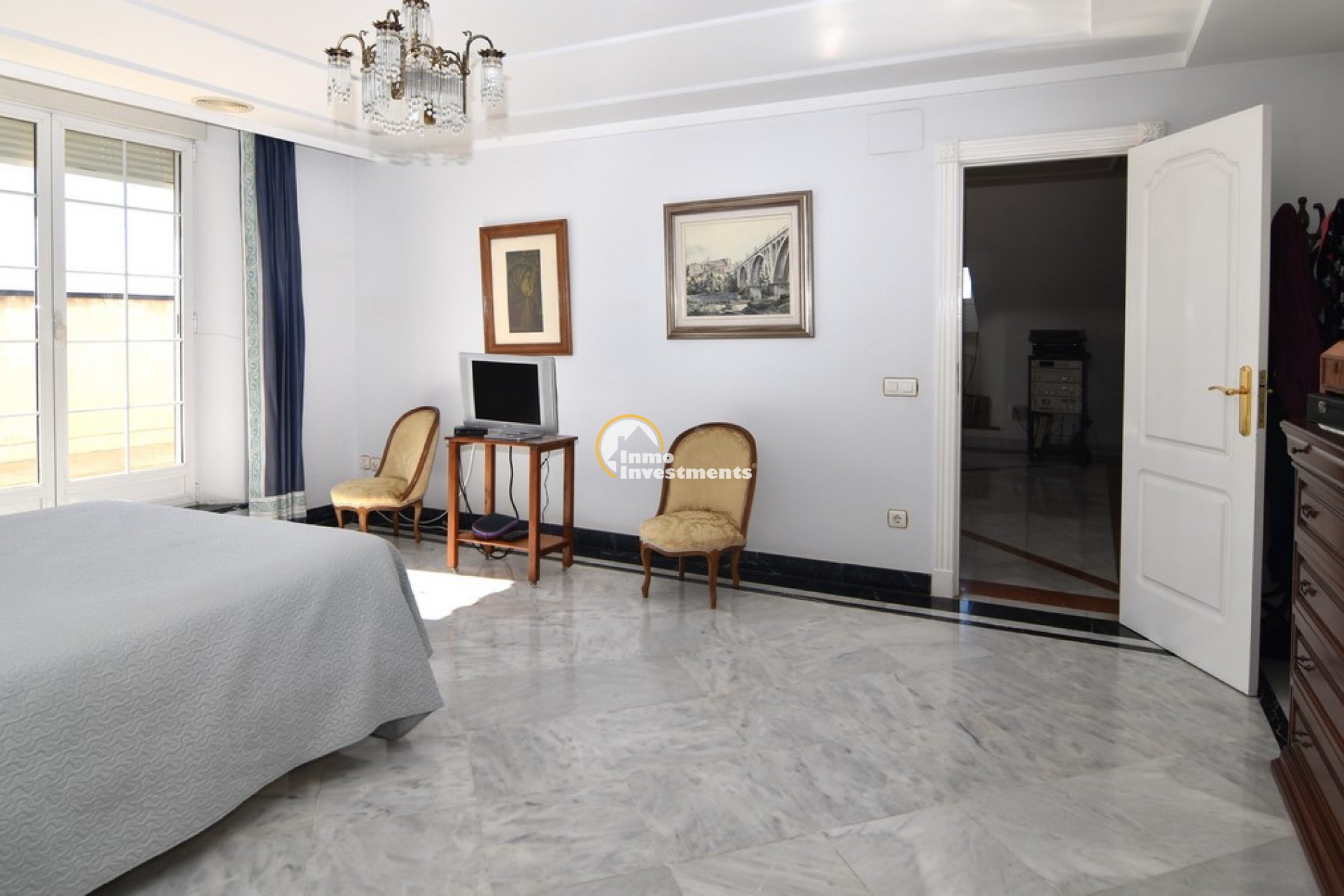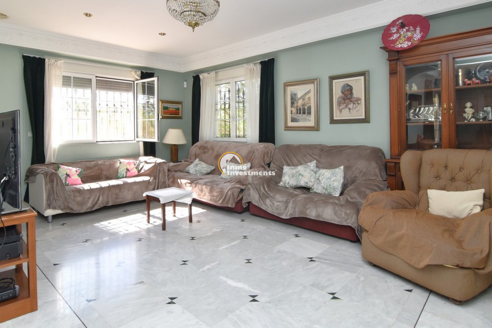 Södervänd villa belägen i den prestigefyllda urbanisationen Partida Llano San José i Elche. På bottenvåningen finns en stor entréhall som leder till köket och den formella matsalen, båda med utgång till en rymlig täckt terrass. Här finns även ett vardagsrum och ett stort kök med frukostplats. På motsatt sida av bostaden finns tre sovrum och två badrum. Övervåningen är avsedd för mastersviten, som inkluderar ett stort sovrum med utgång till en privat balkong, ett mycket rymligt badrum samt en stor walk-in-garderob och dressing room. Källarplanet på cirka 100 m² erbjuder ytterligare tre sovrum, ett badrum, ett stort spel- eller sällskapsrum samt en bodega.Utomhus erbjuder fastigheten ett separat garage med plats för minst tre bilar, en stor 10 x 5 pool med uteplats samt uppvuxna trädgårdar med en variation av etablerade växter och kaktusar.Fastigheten ligger längst in på en liten återvändsgata, vilket ger ett mycket lugnt och privat läge. Villan står på en tomt om cirka 5,000 m². I detta område är minsta tomtstorlekarna omkring 2,000 m², alla klassificerade som urban mark snarare än rustik, vilket ger gott om utrymme och avstånd mellan grannfastigheterna. Urbanisationen består huvudsakligen av permanentboende spanjorer, med några nord- europeiska familjer som också bor i området.