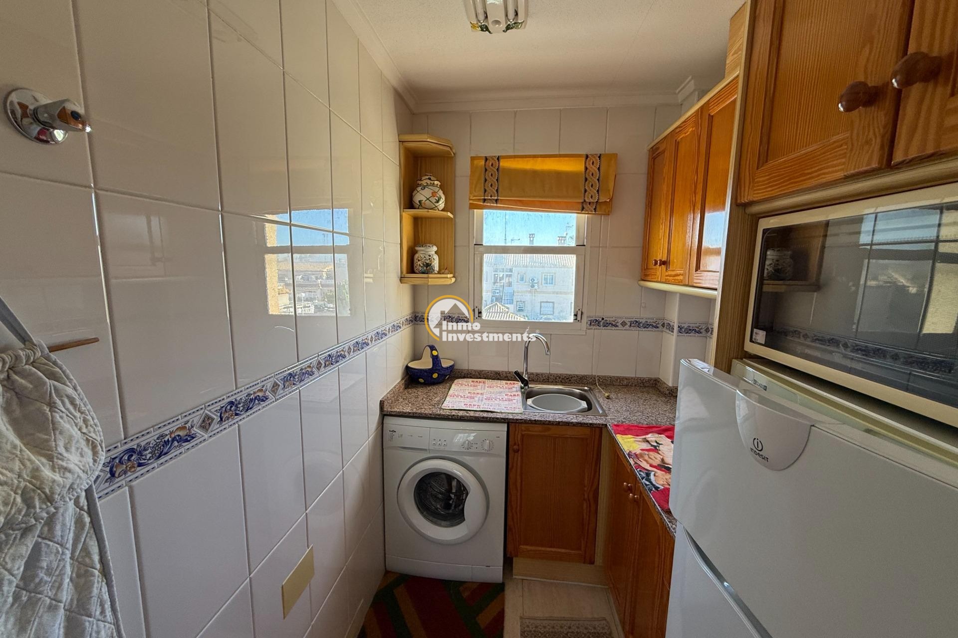 En unik möjlighet att förvärva en bostad i ett lugnt bostadsområde i Torrevieja, med en stillsam miljö och öppna vyer, idealisk för dig som söker en mer avkopplad livsstil nära kusten. Bostaden har två rymliga sovrum, båda med utsikt mot utsidan, samt ett kök med fönster som ger naturlig ventilation och en praktisk avskiljning från det huvudsakliga vardagsrummet. Utomhus finns en generös södervänd uteplats/trädgård på markplan, perfekt för måltider utomhus och sociala tillställningar, Utomhusytan erbjuder utmärkt potential att skapa en bekväm och privat miljö för användning året runt. Bostaden är belägen i ett välskött bostadskomplex med gemensam parkering, en pool och grönområden.